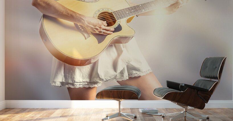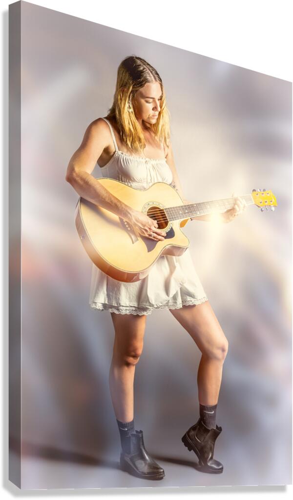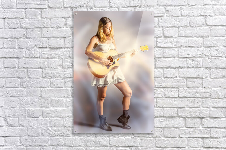 A playout of lights and rhyme with acoustic guitar woman staging a performance in vibrant verse