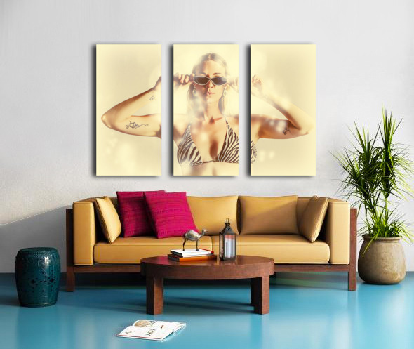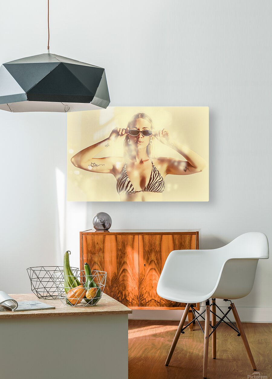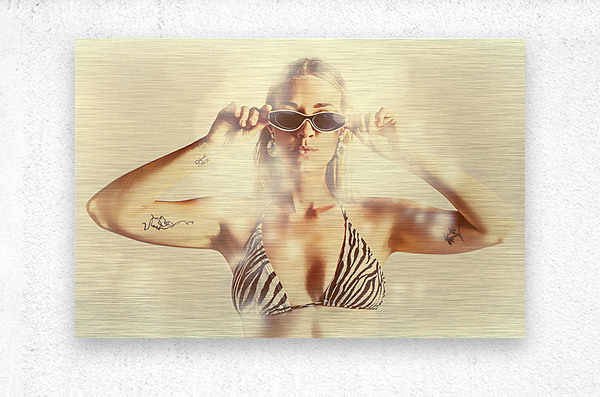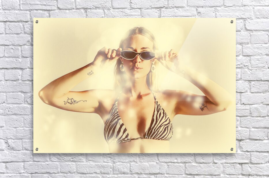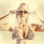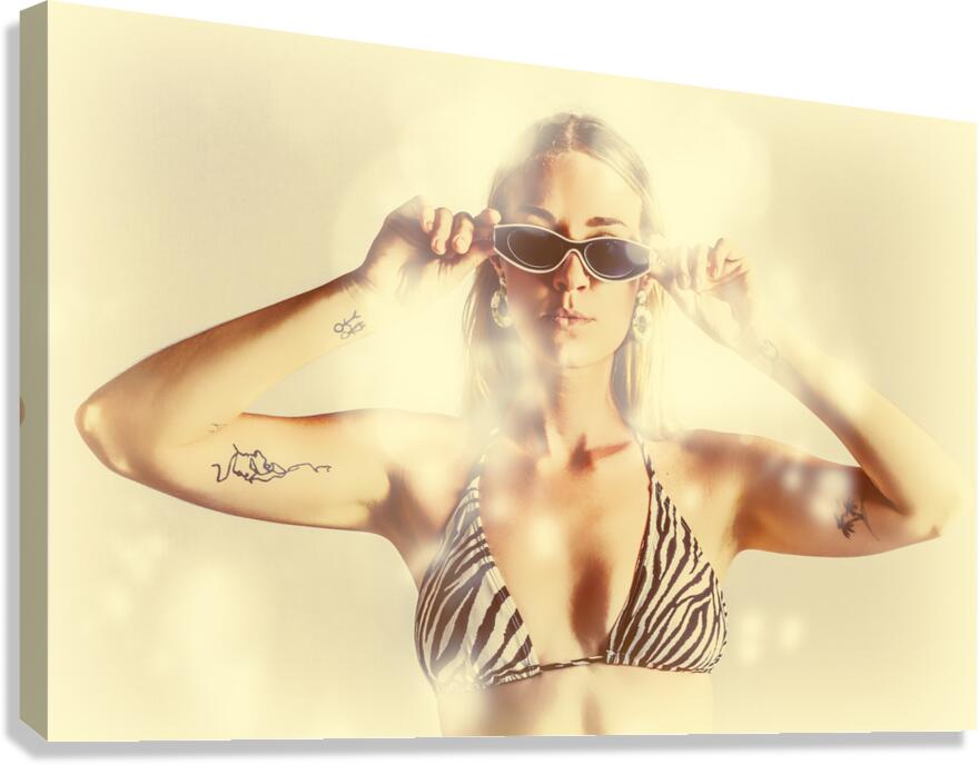 Summer flares light the scene of a beautiful bikini babe wearing shades in scorching hot summer fashion