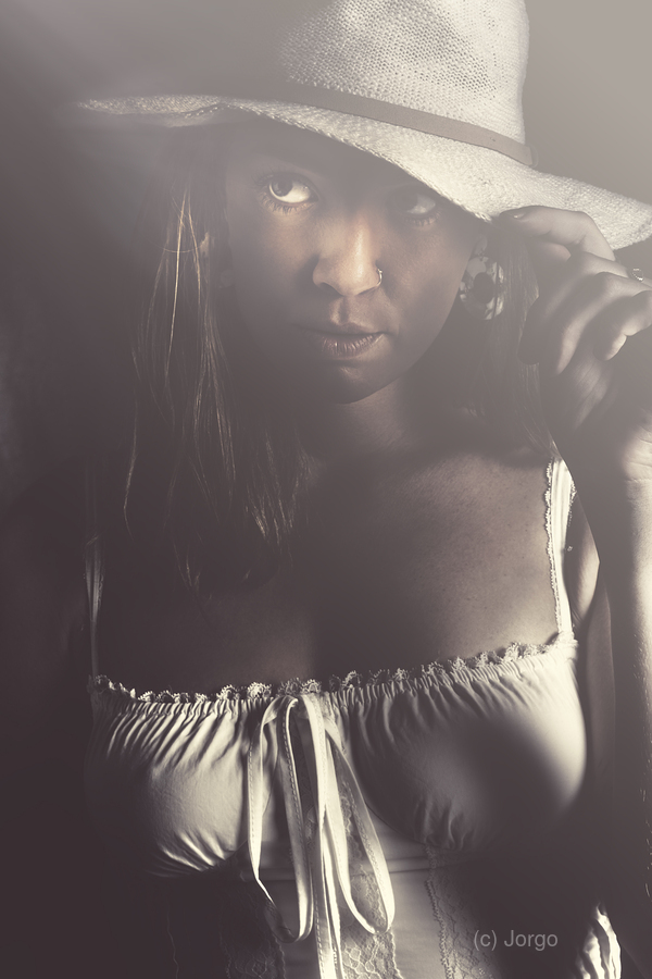 Creative fashion photography on a shadowed female model lit by mode lighting in the shades of spring and attire