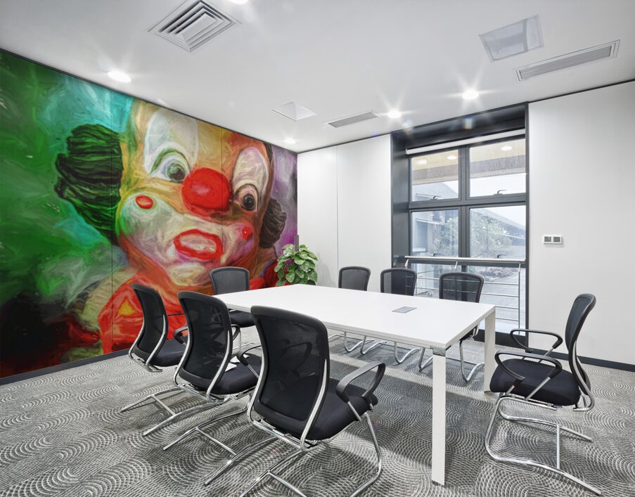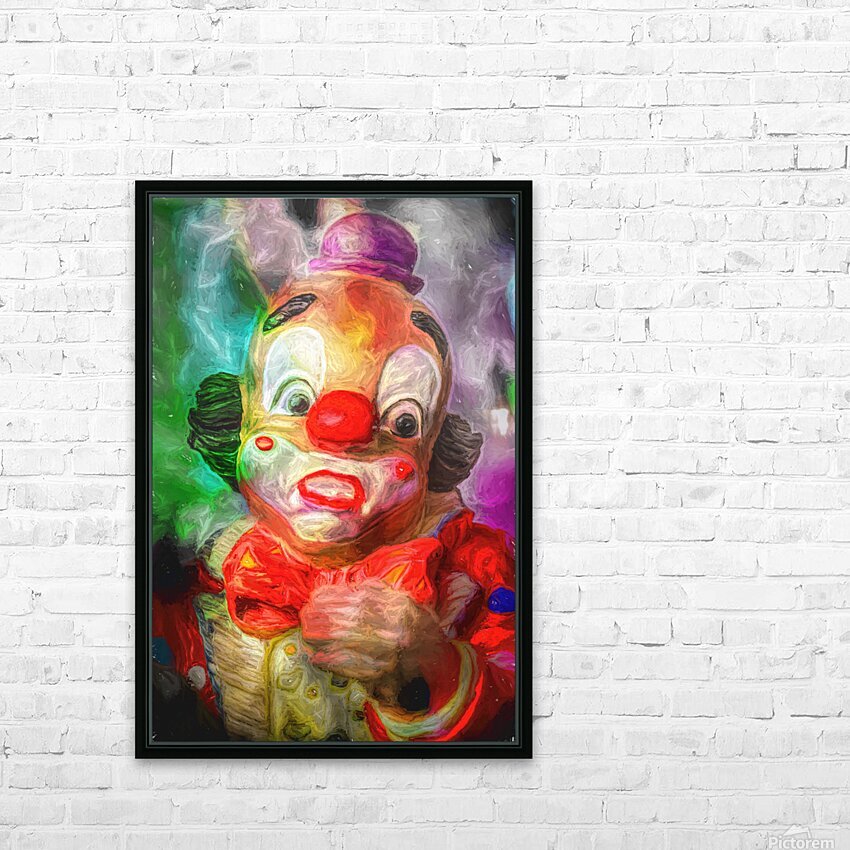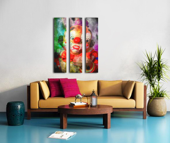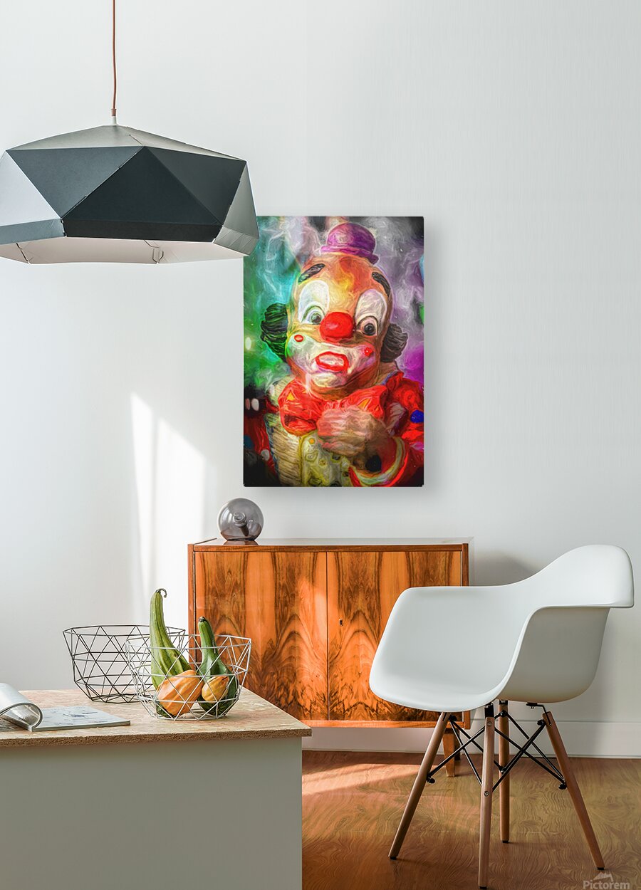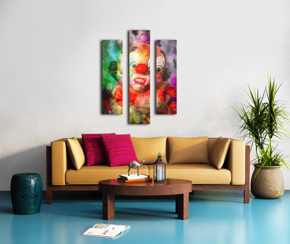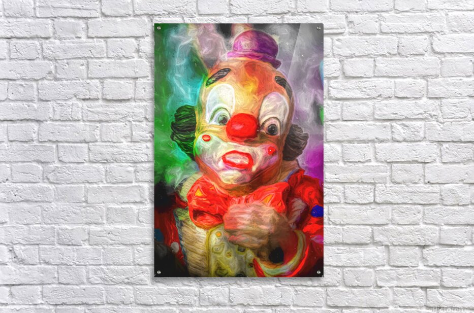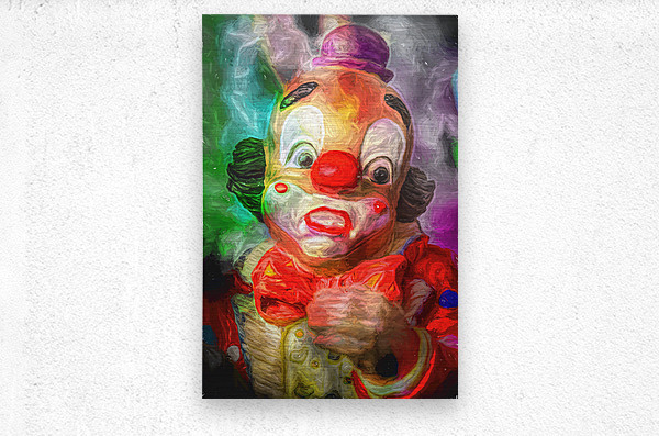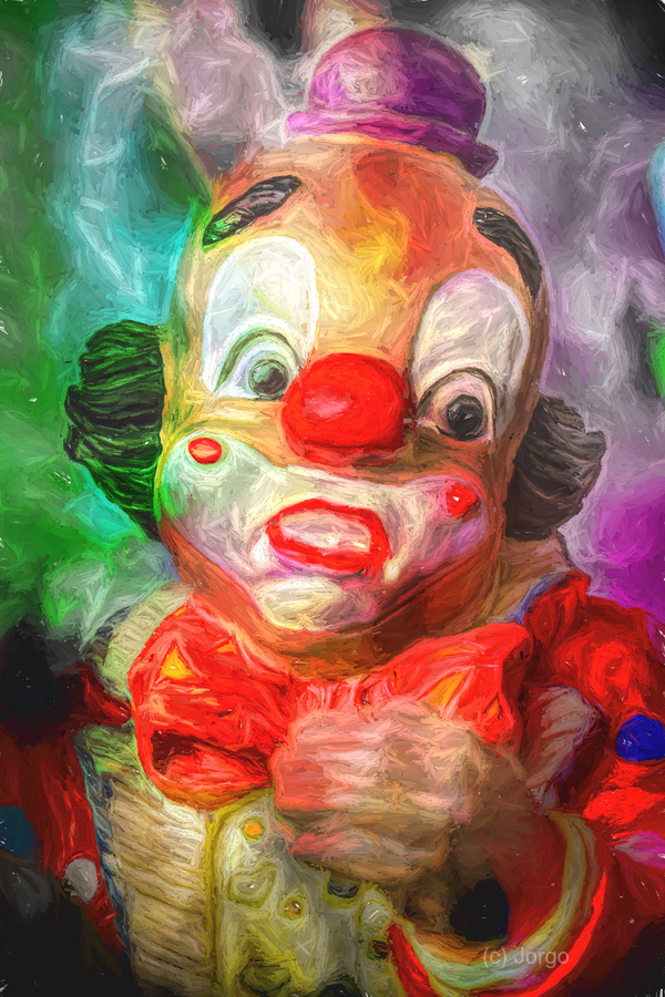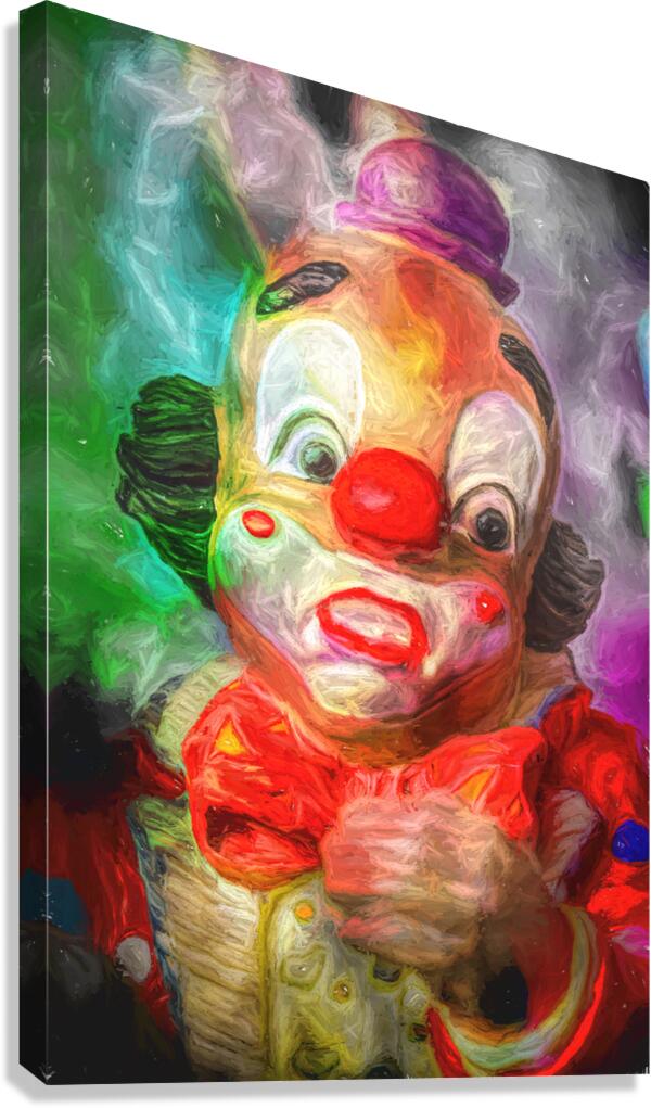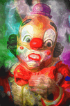 Artistic fine art digital painting on a quirky clown expressing a circus surprise in carnival colors