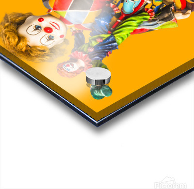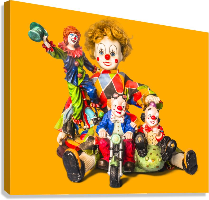 Festive funfair in a scene of circus clown dolls in a toy carnival on studio background