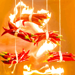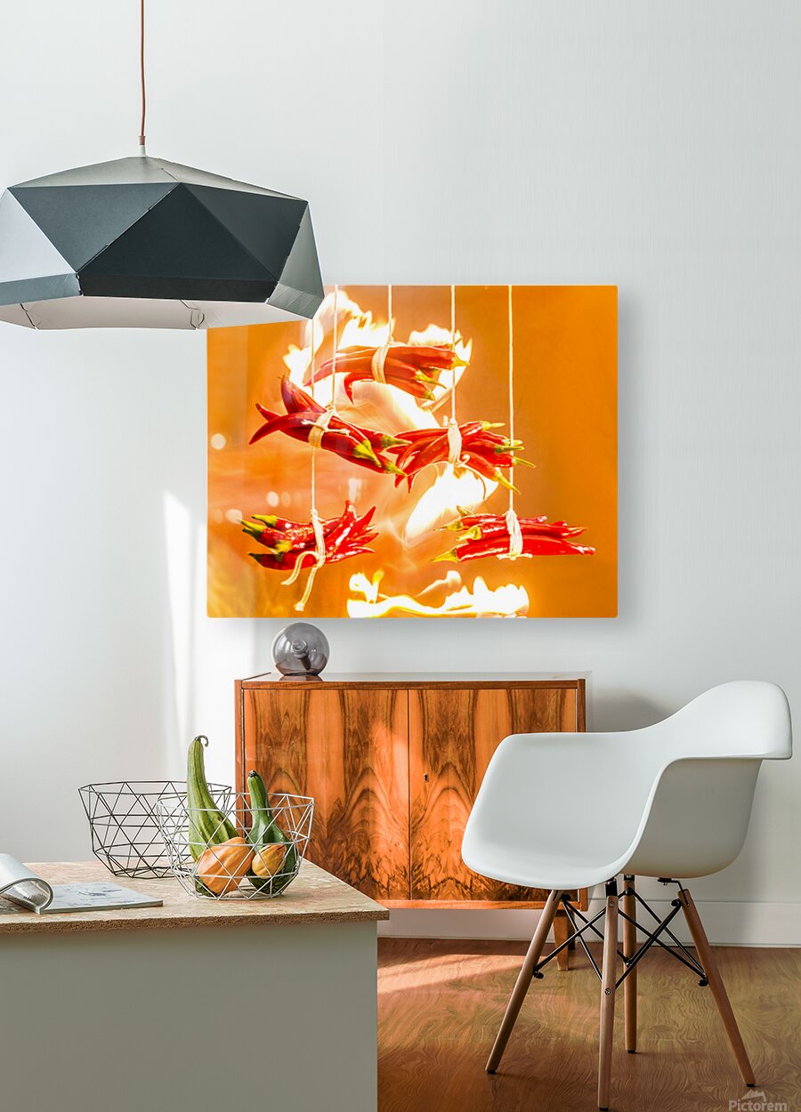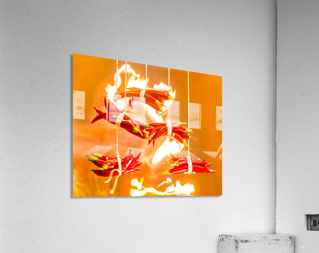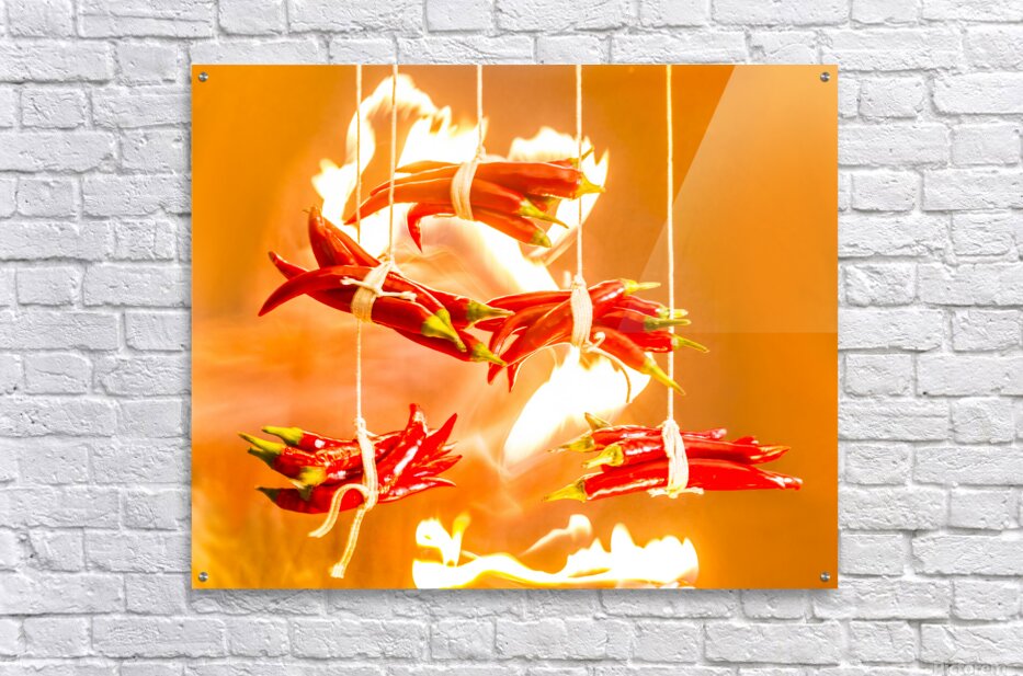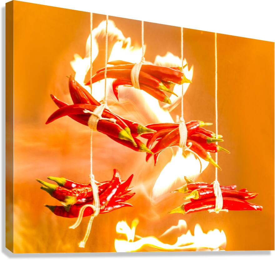A hot scene of barbeque and grill with chilli peppers roasting over a open flame of exotic restaurant delicatessens