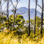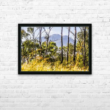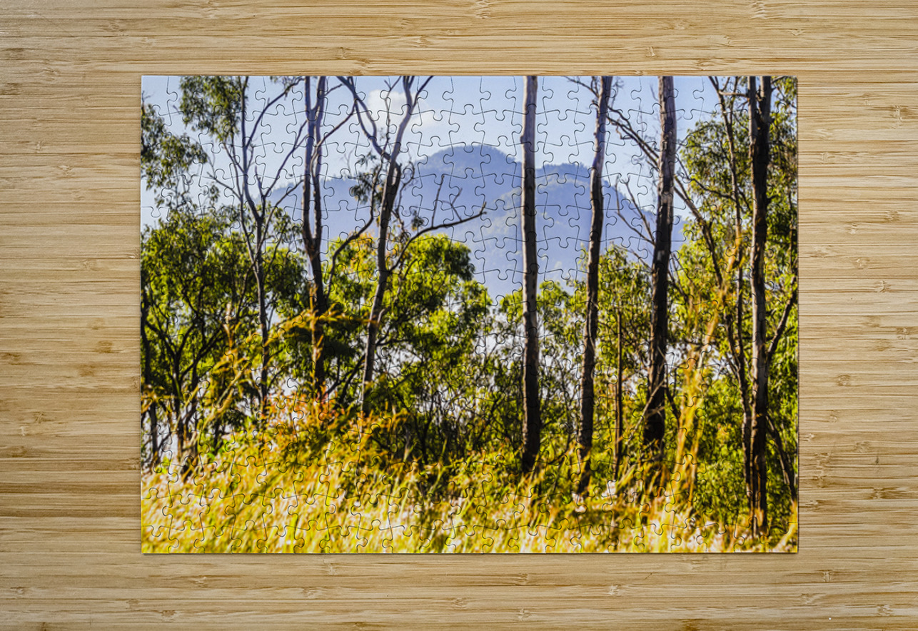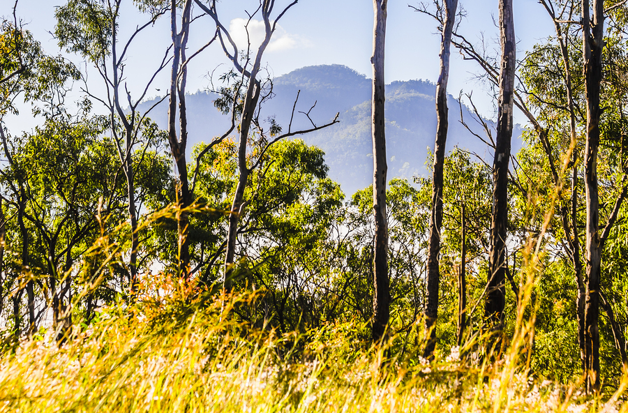 Colourful vista framed creatively by Queensland botany looking towards the majestic heights of lovely Mount Perry Australia