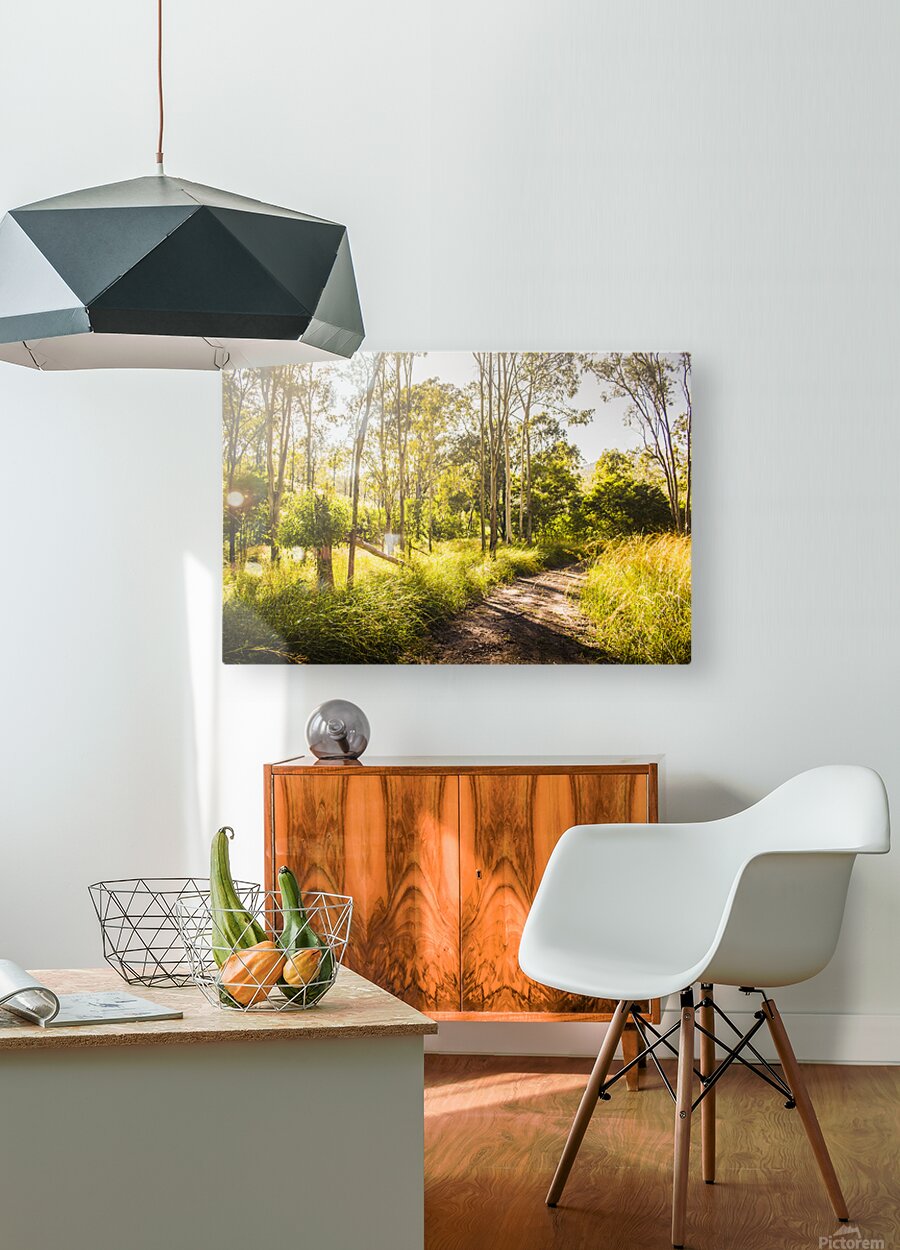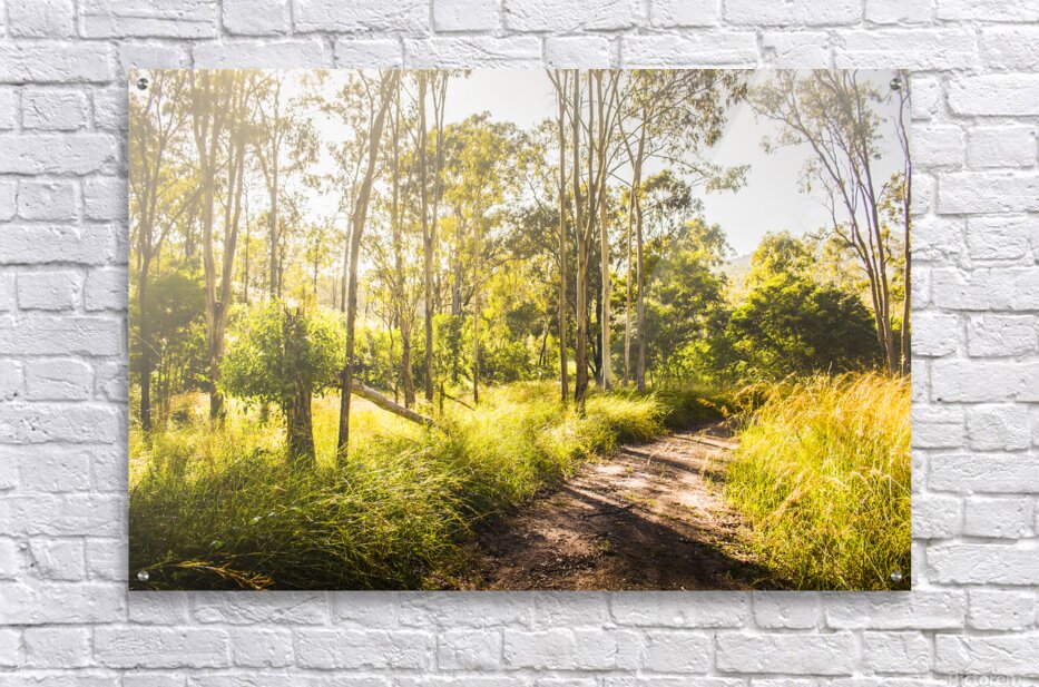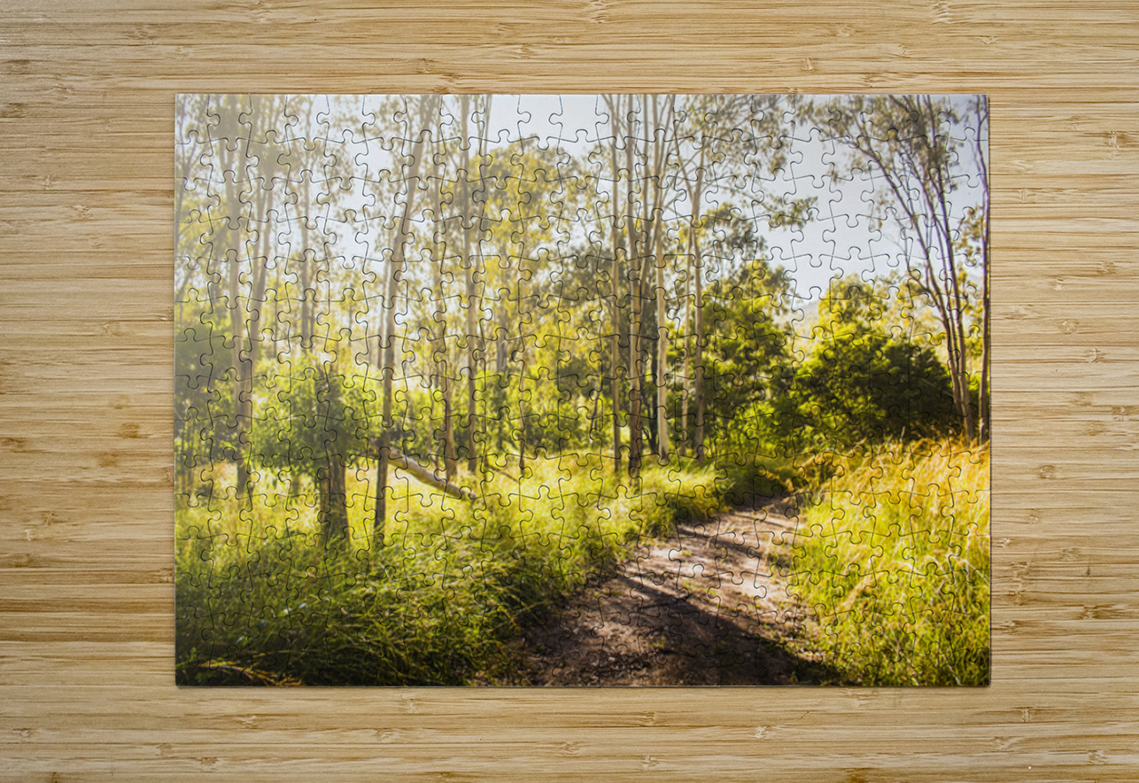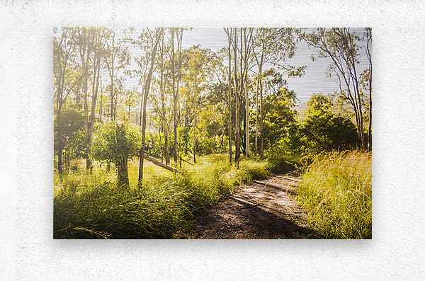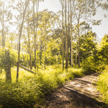 A romantic trail winds through lush greenery in Mount Perry Queensland illuminated by warm sunlight. Tall trees line the path creating a peaceful atmo...[+]
