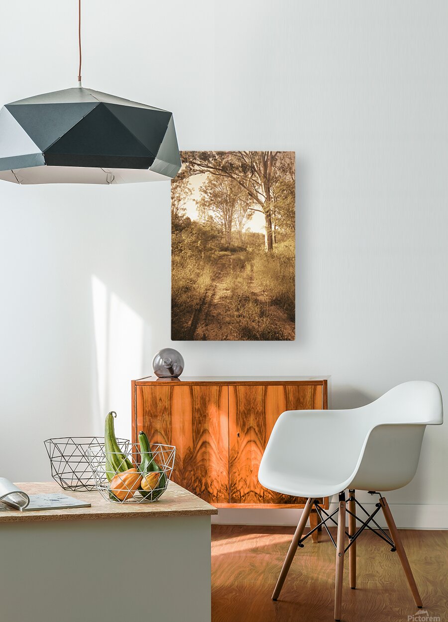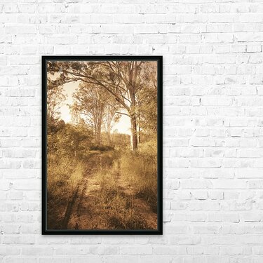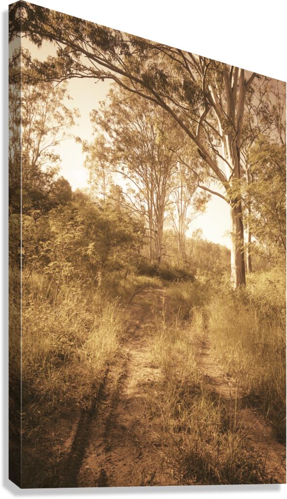 A scene in rustic Queensland eloquence with a dirt track trailing through muted autumn woods. Taken: Mount Perry QLD Australia