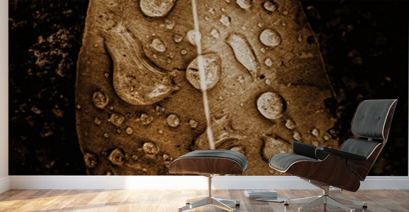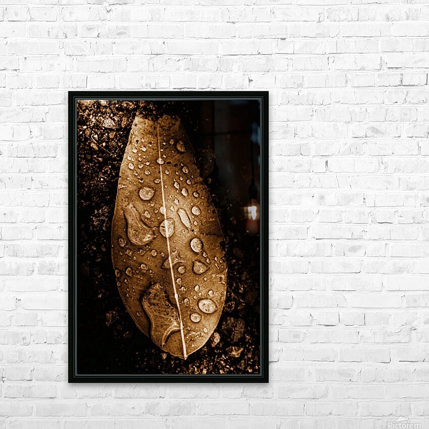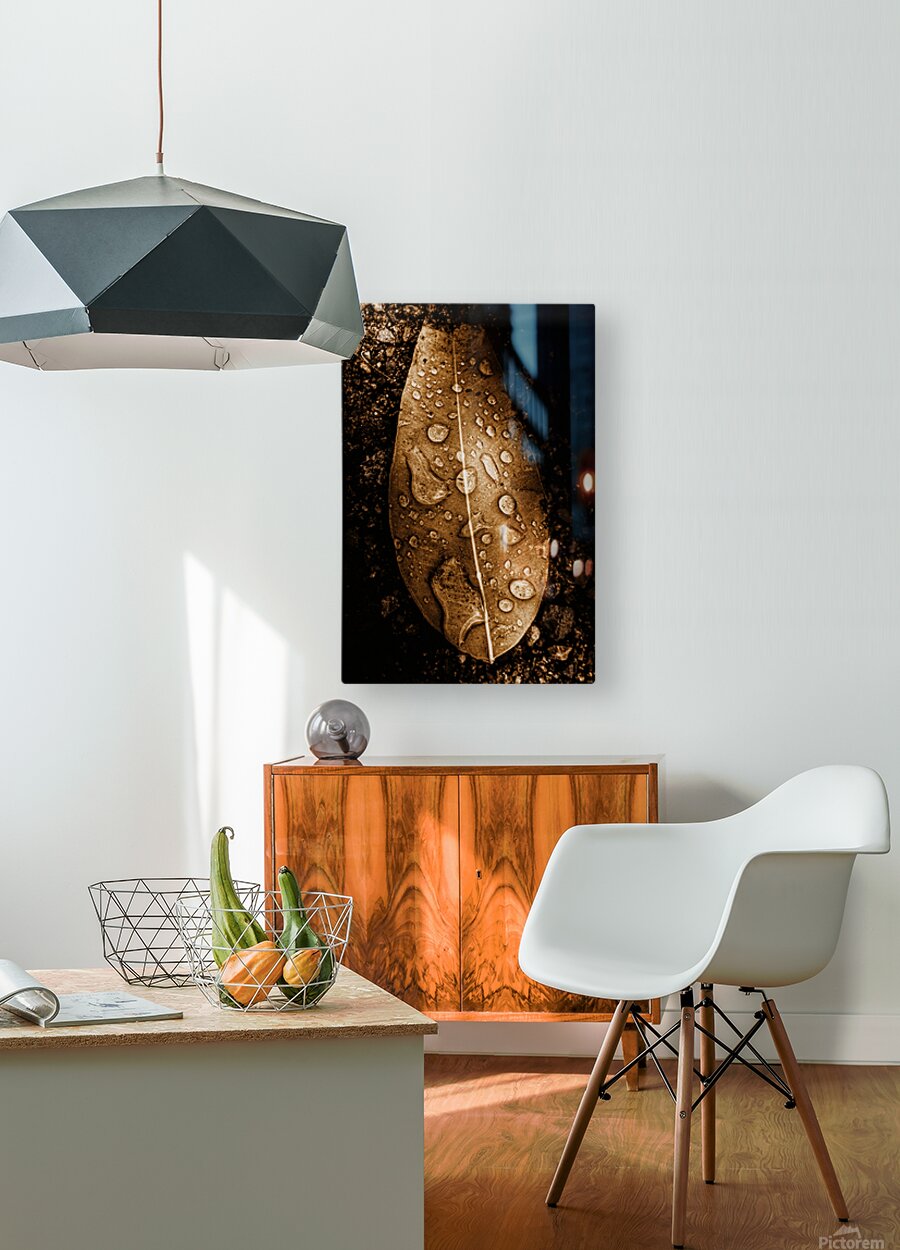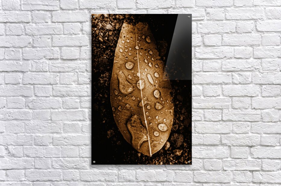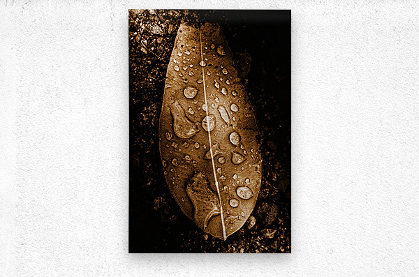 Natural still-life art on a fall leaf covered in the fall of autumn rains