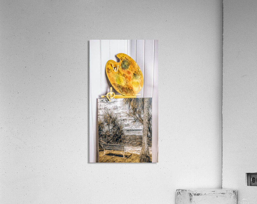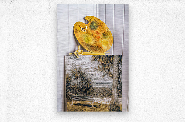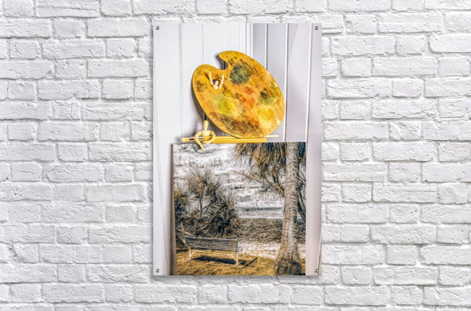 Dreaming of a artscapade two wooden mannequin art models paint a beach bench scene straight from the shores of Bargara Queensland Australia