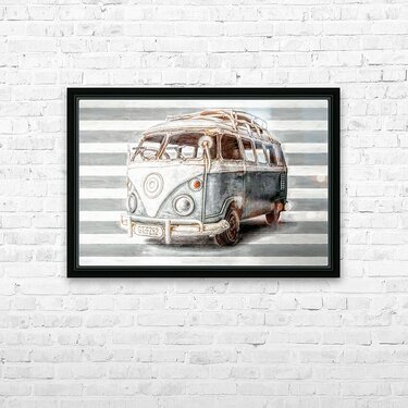 Get this artwork "Blue Surf Camper" in a framed print.