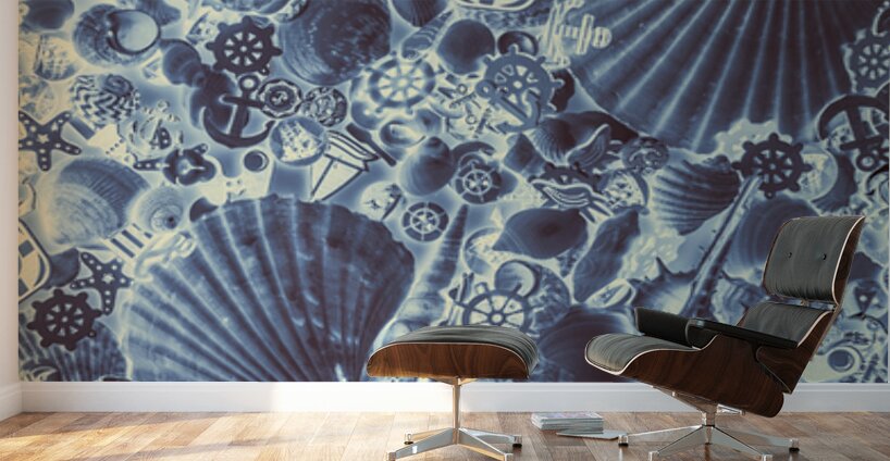 Inversism scene of shells anchors and nautical iconography in abstract coastal form