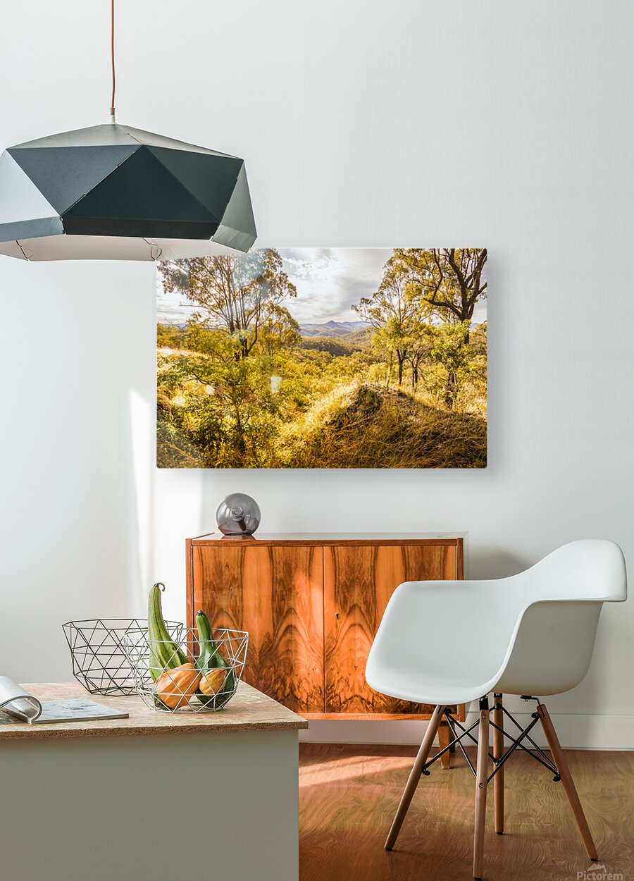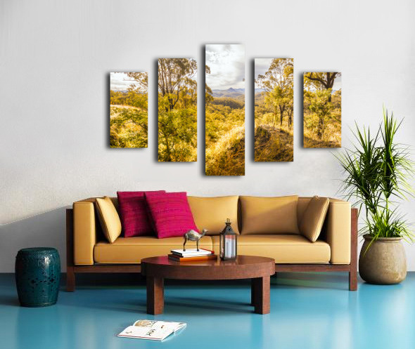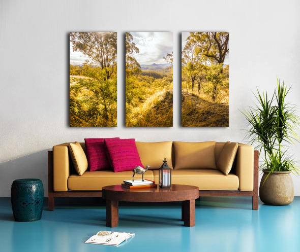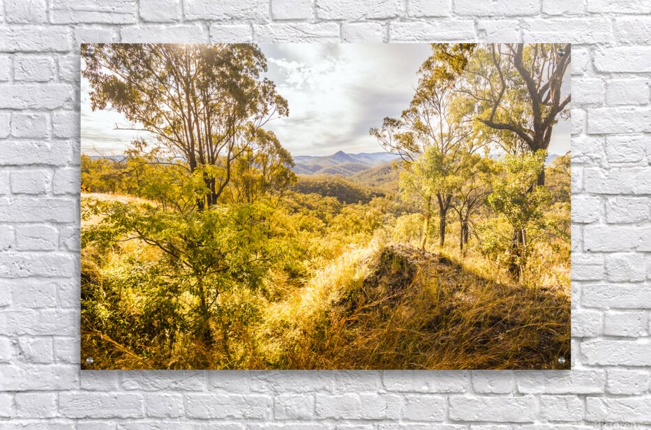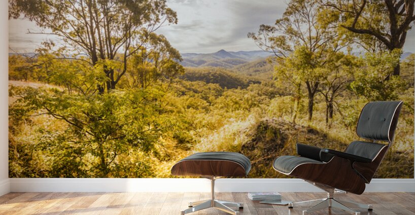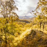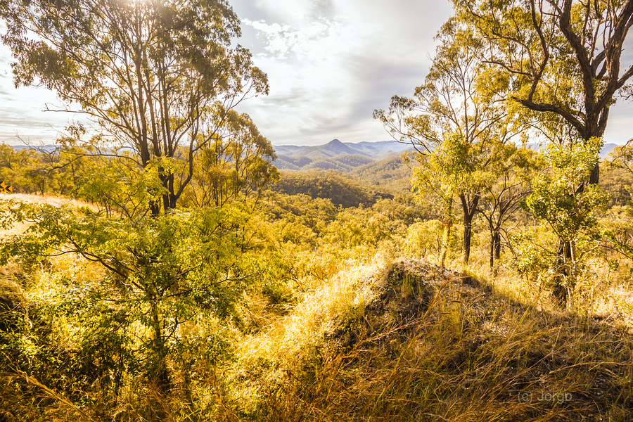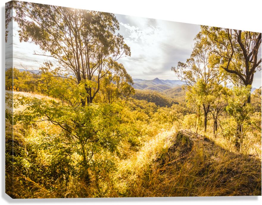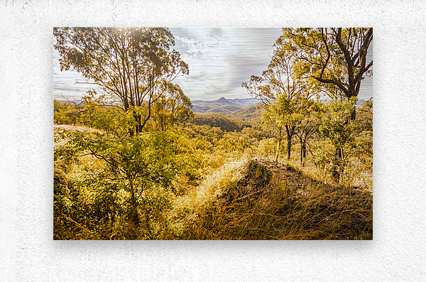 Scenic bushland outlook into calming country vales with Australian scrub and forests. Kalpowar Queensland Australia
