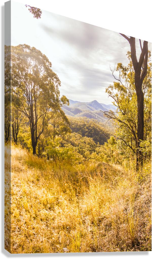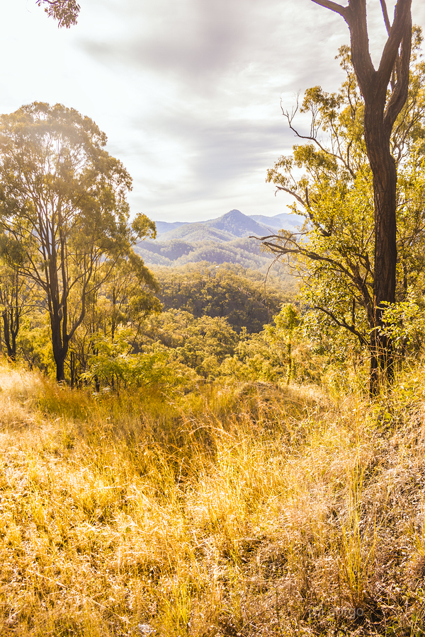 A visual rural opening from highland countryside to lowland and mountainous topography. Captured Kalpowar Queensland Australia