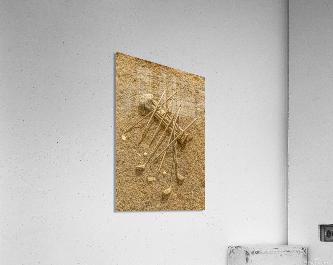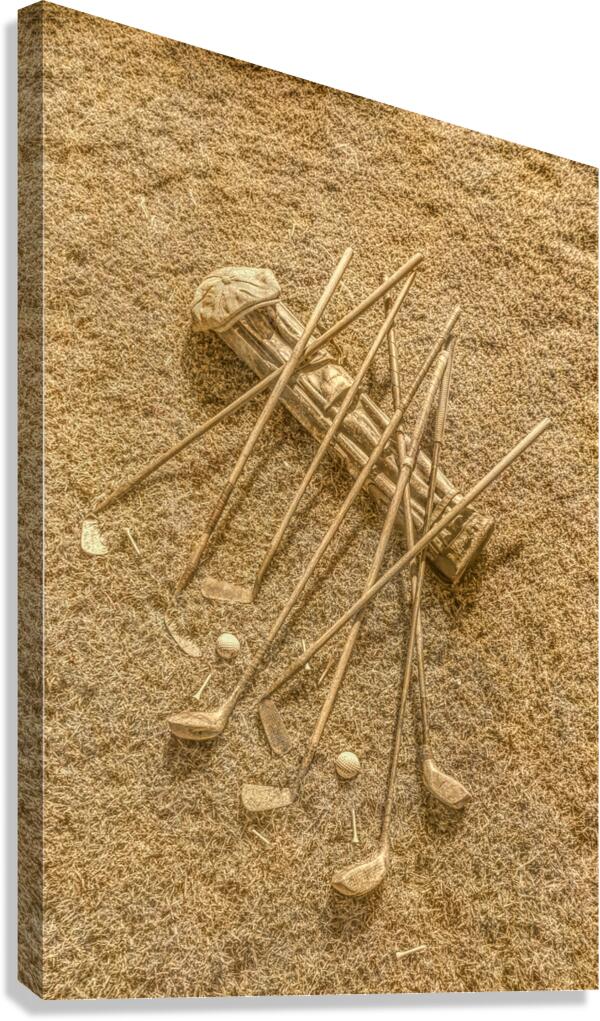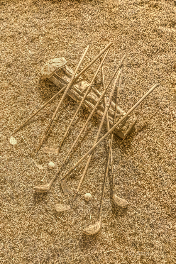 In a sporting scene of matched nostalgia a bag of clubs is played out for an old golf game