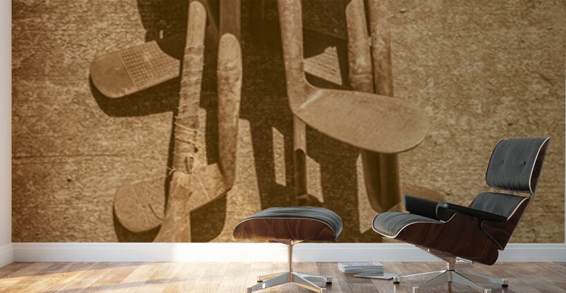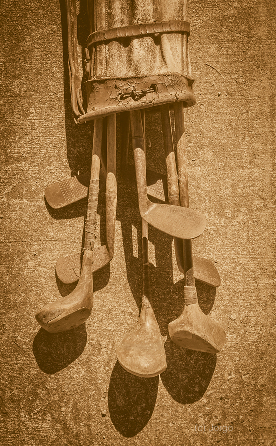 A tip of the stick to old golf with worn wooden drivers and old irons bleached in Sunday afternoon light