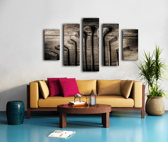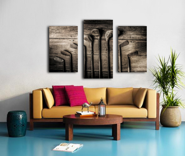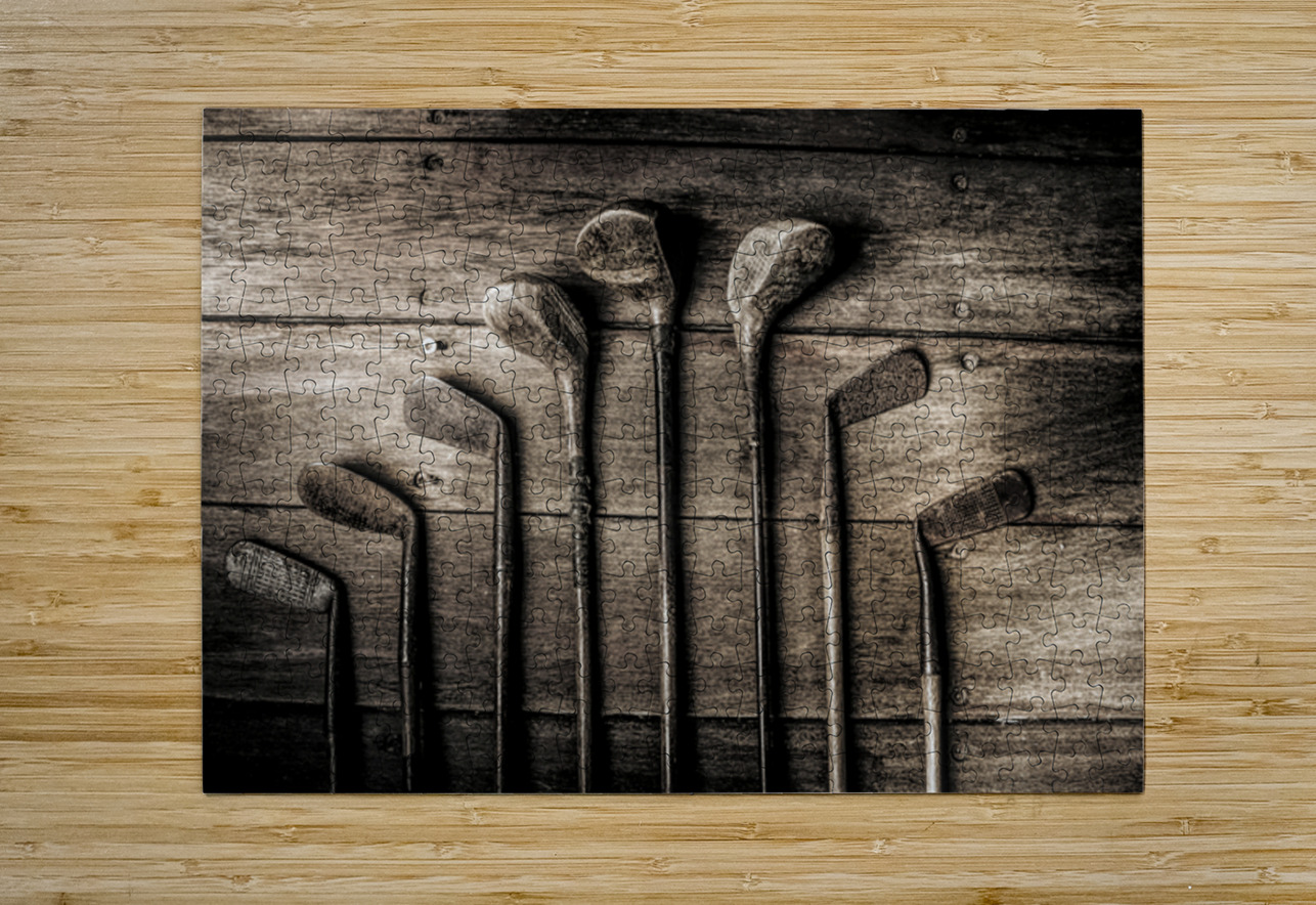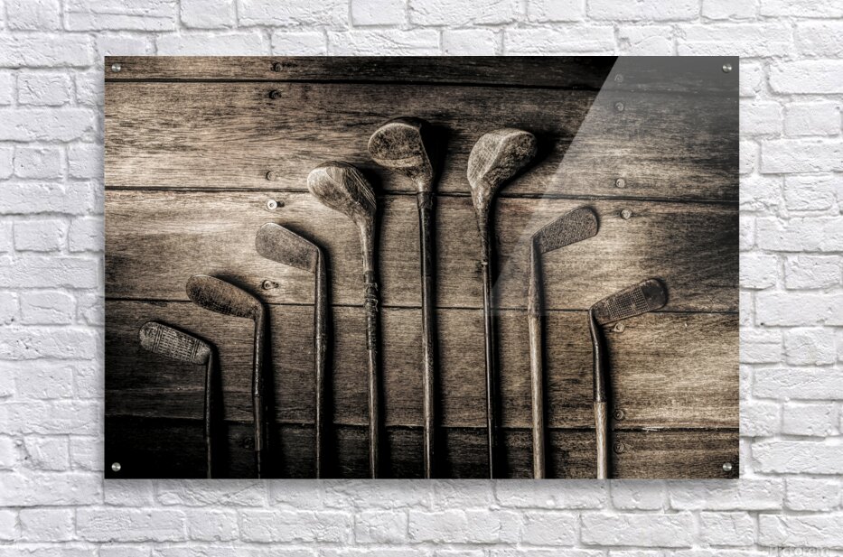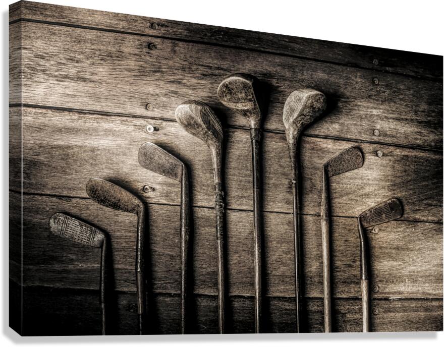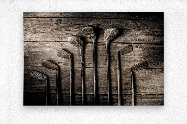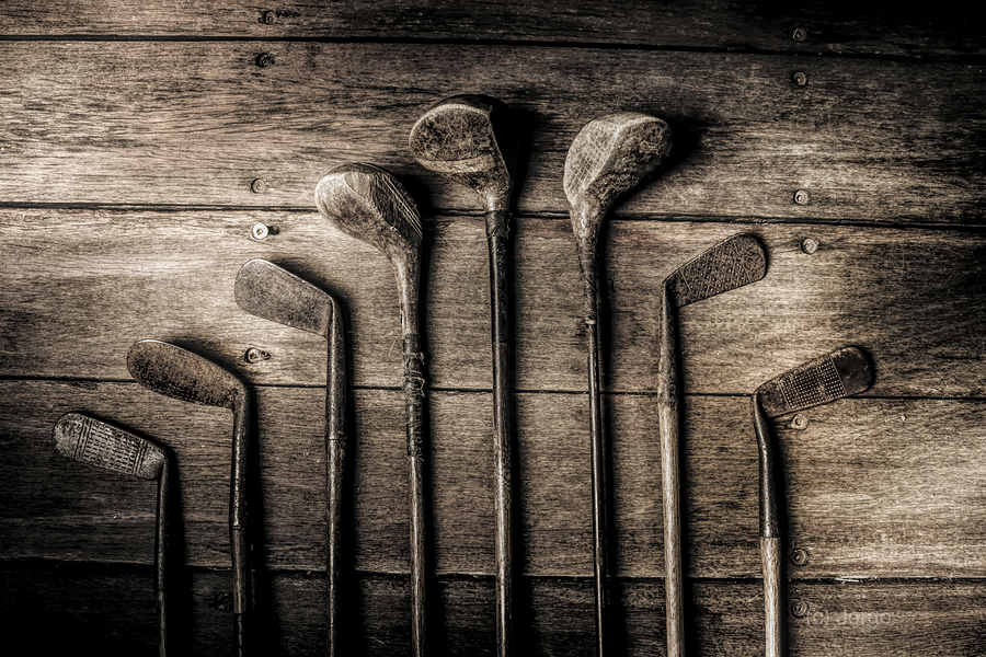 Vintage but not over the hill eight old woods and irons lay in waiting for the another glory day at the golf club