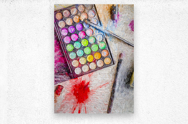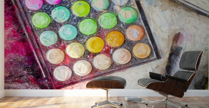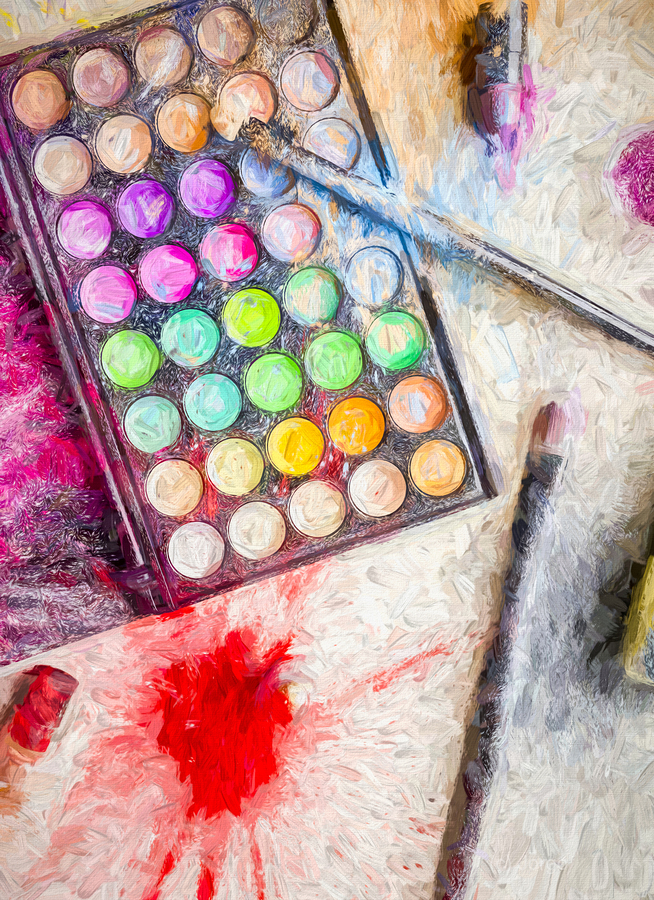 Creativity in the made up mix of make up colours and shades with eyeshadow palette making messy magic in oil painting style