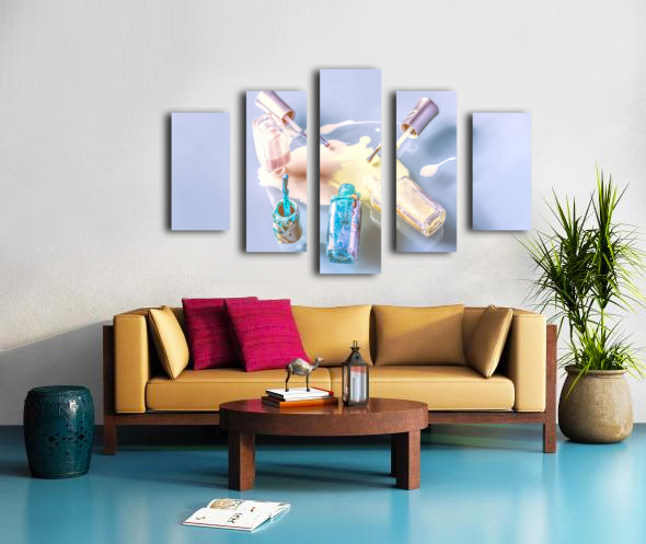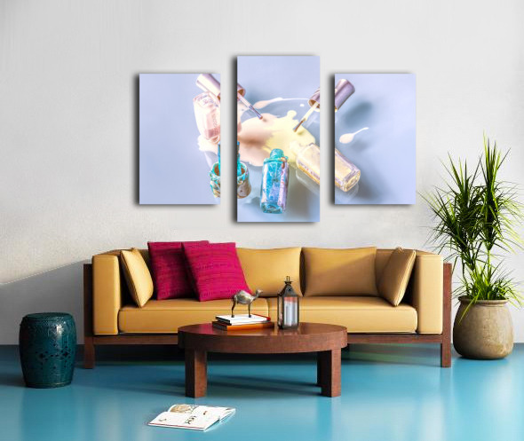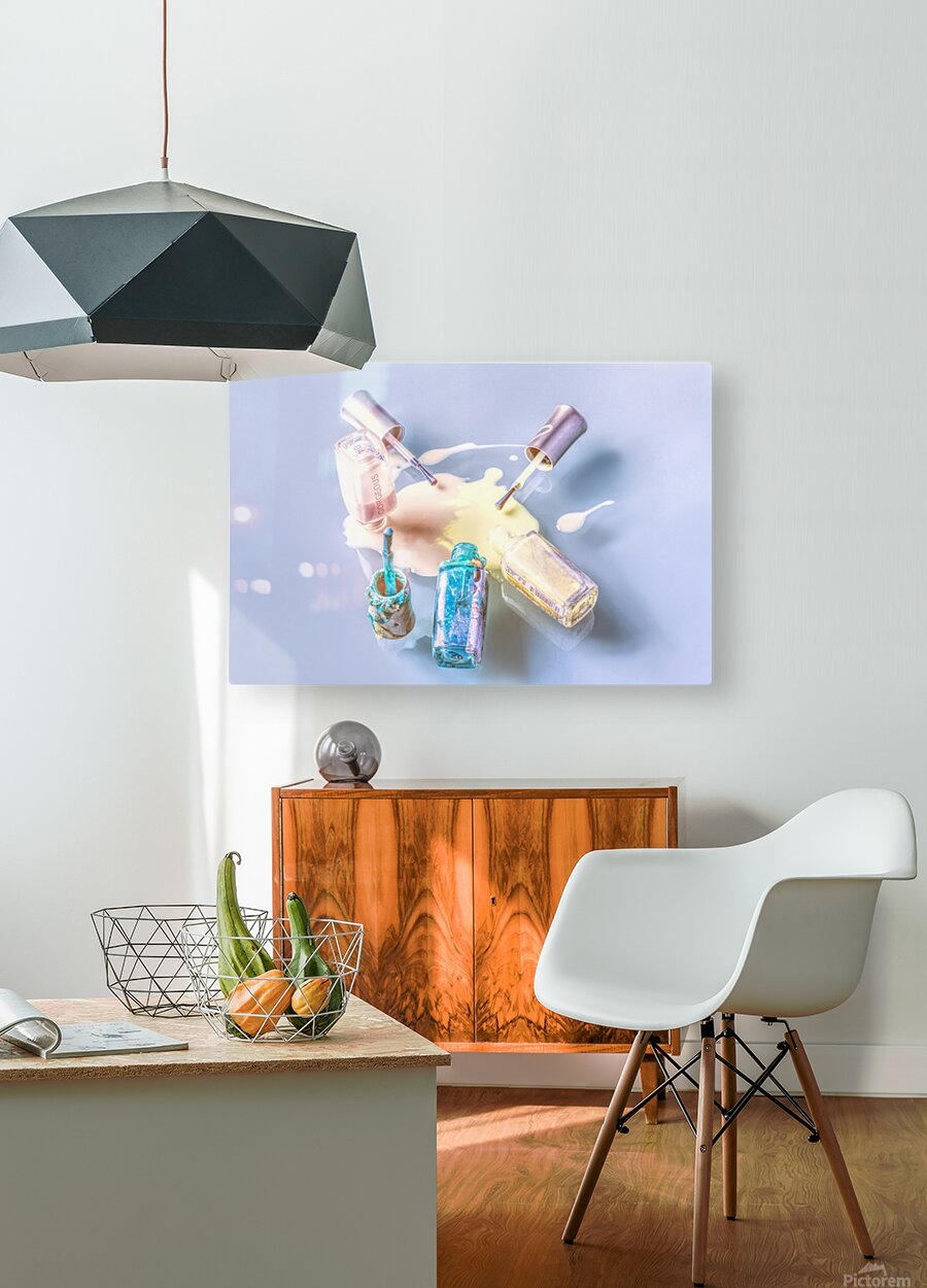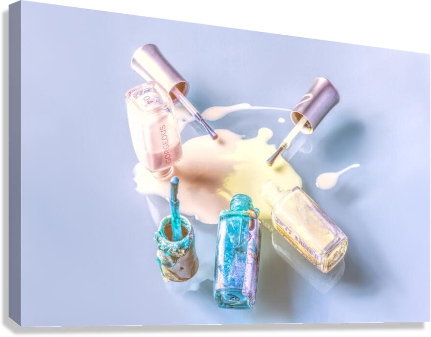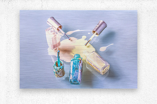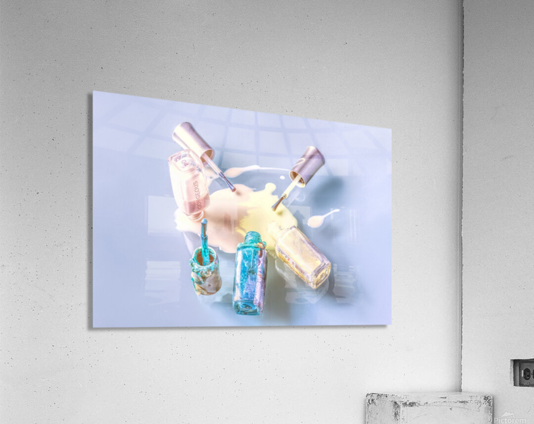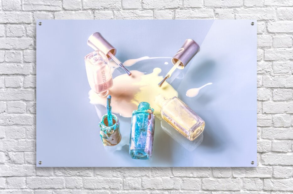 A sparring of colour as pallets of pastel mix in a puddle pour of nail paint polished on glass
