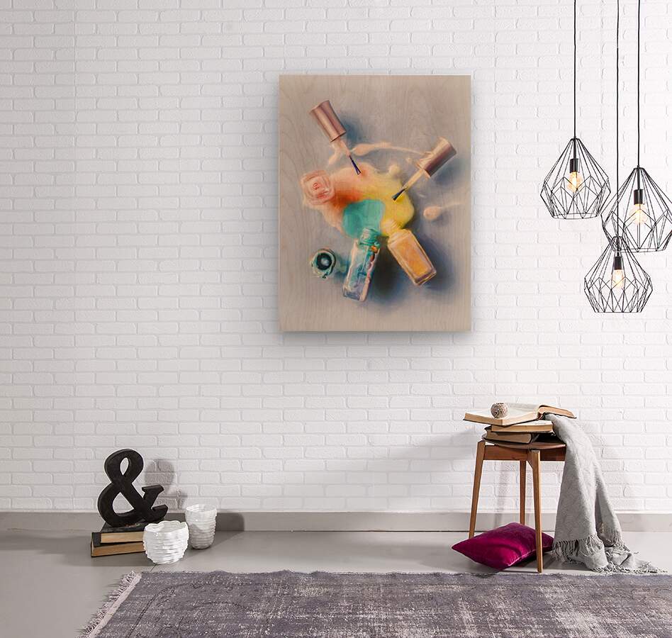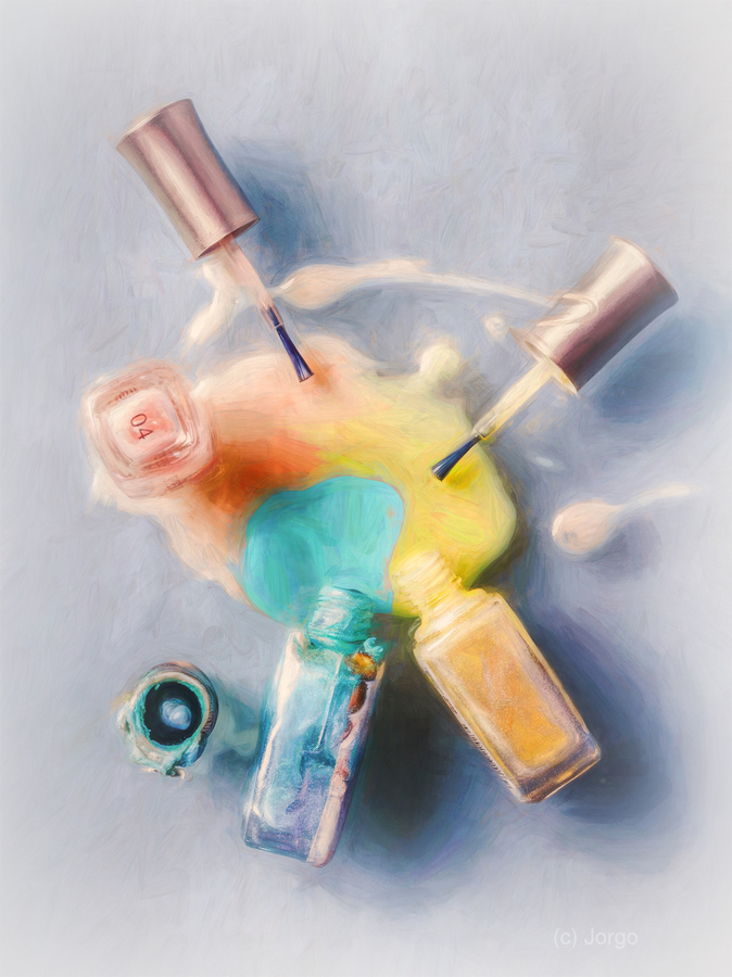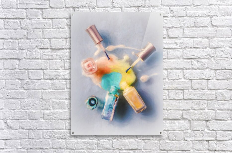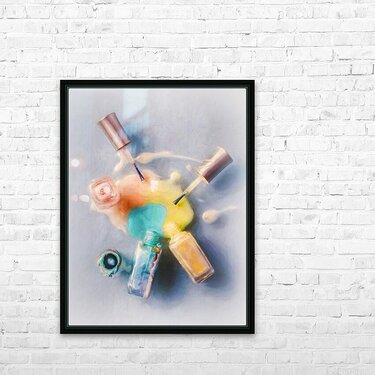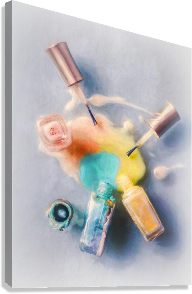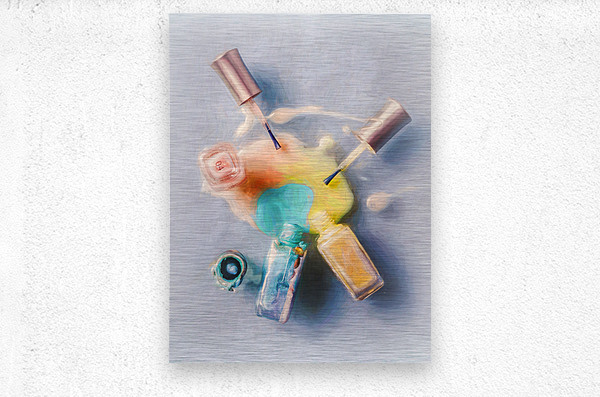 Fine art foray in liquid gloss and fashion with a spillage of nail varnish in unpolished beauty composite