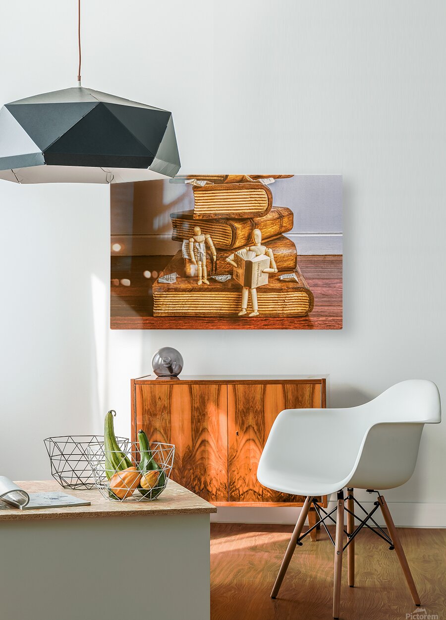A fiction in toy play as mannequin dolls stage a story time scene of intellectual inspiration