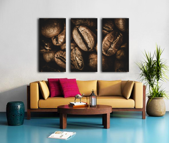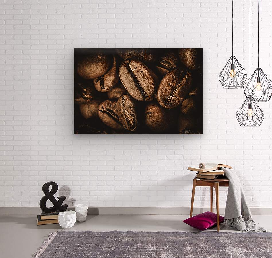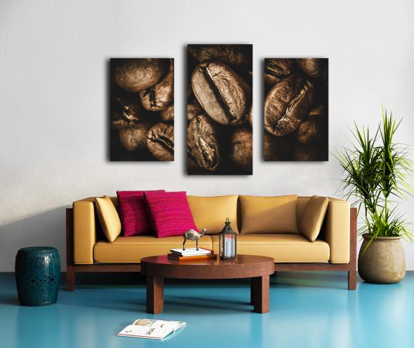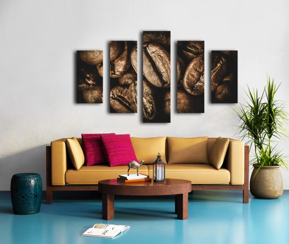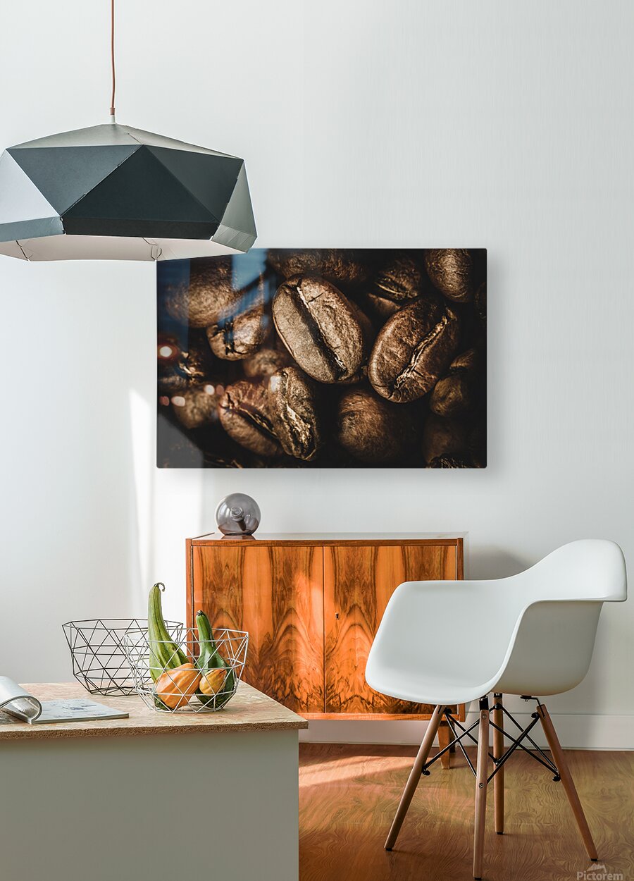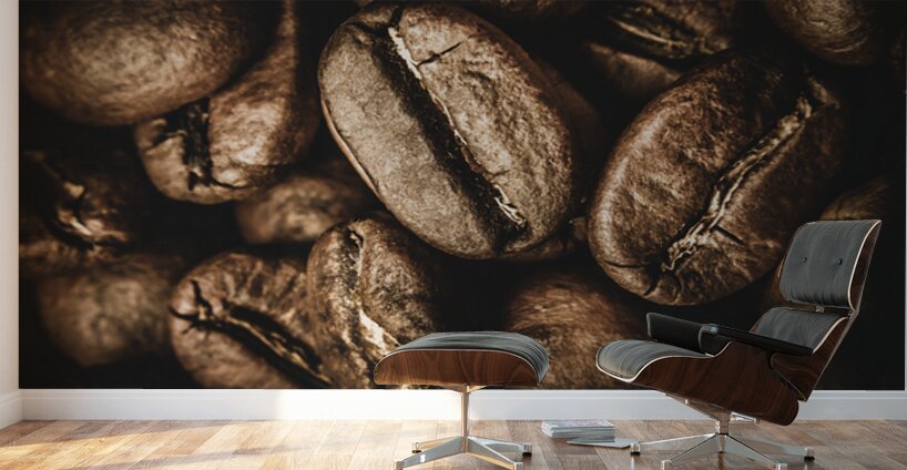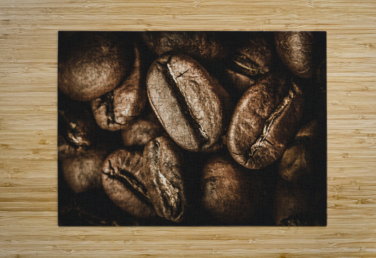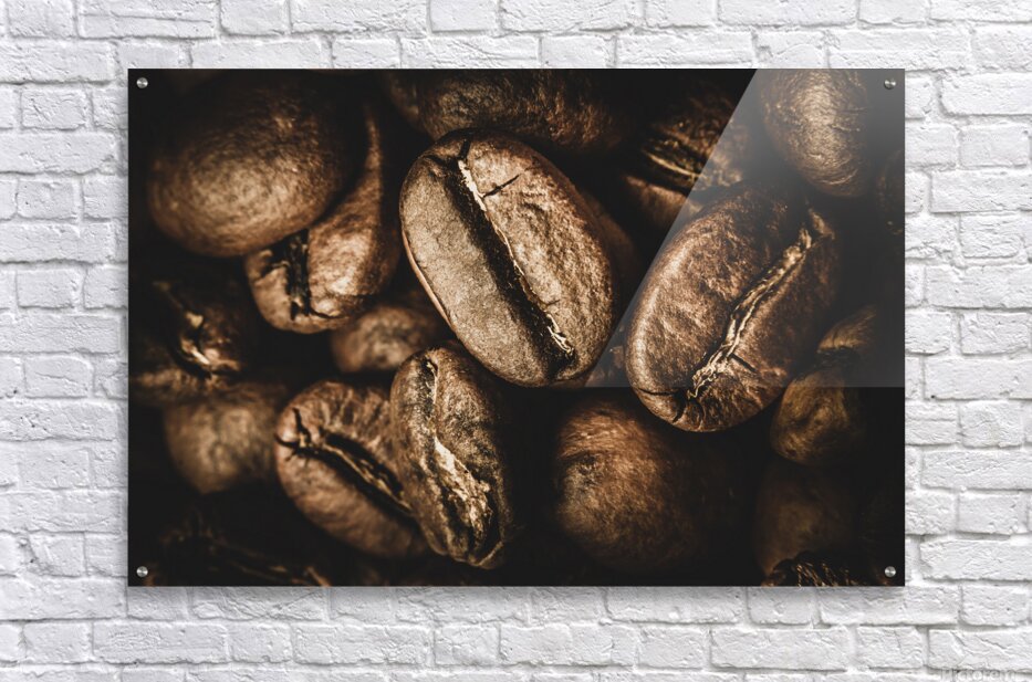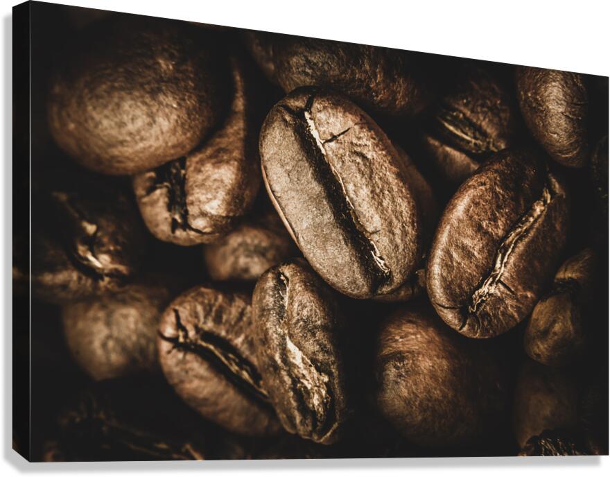 Macro food art on a heap of cafe goodness with brown coffee beans displayed in close visual stimulation