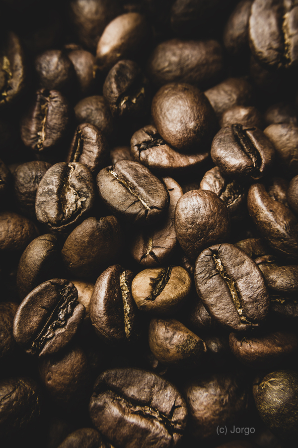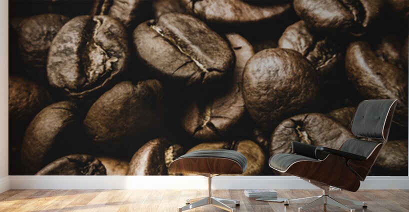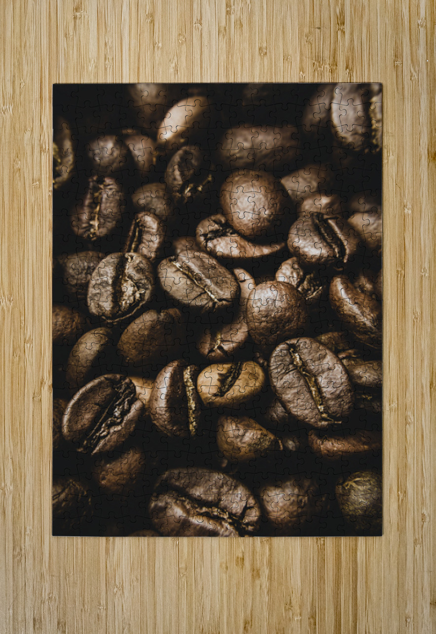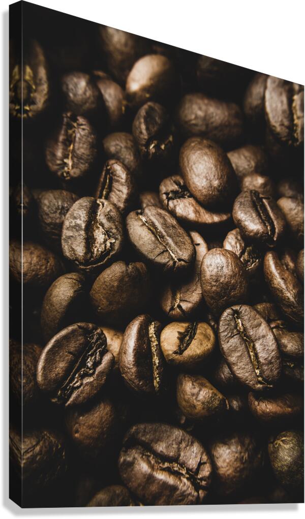 Still life scene of spilled out beans from the shadows of dark roasts and long black brews