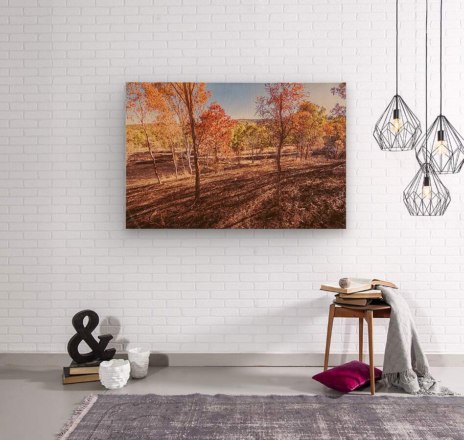 A vibrant scene of winters charming wonders with country vistas of distant dirt roads and crisp orange winter leaves. Mt Perry Queensland Australia