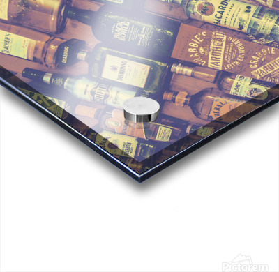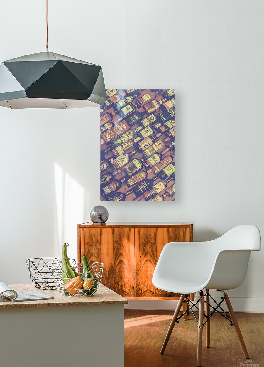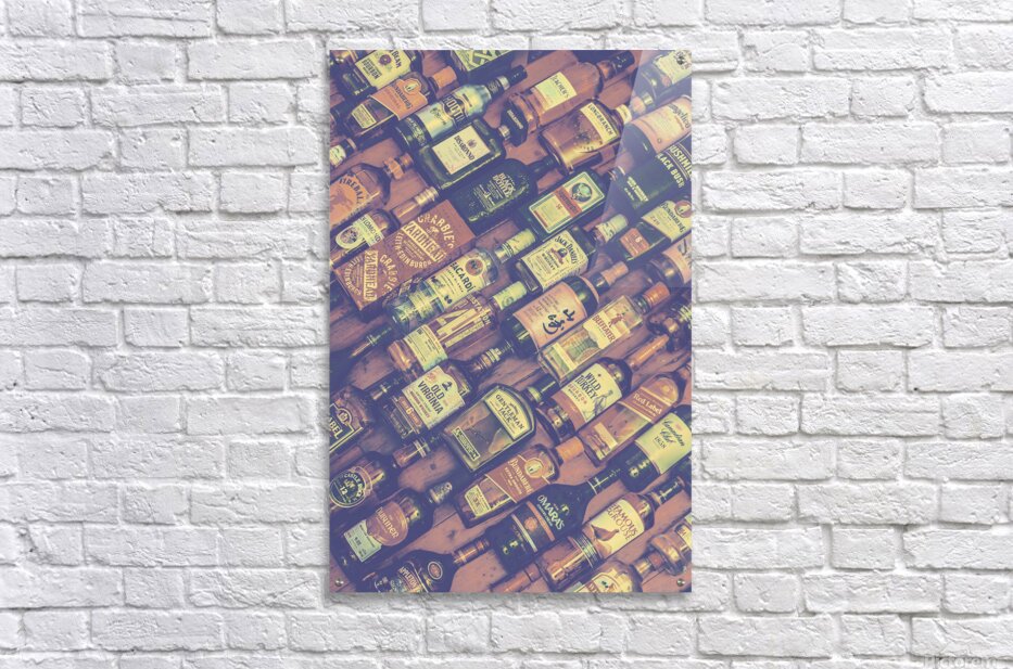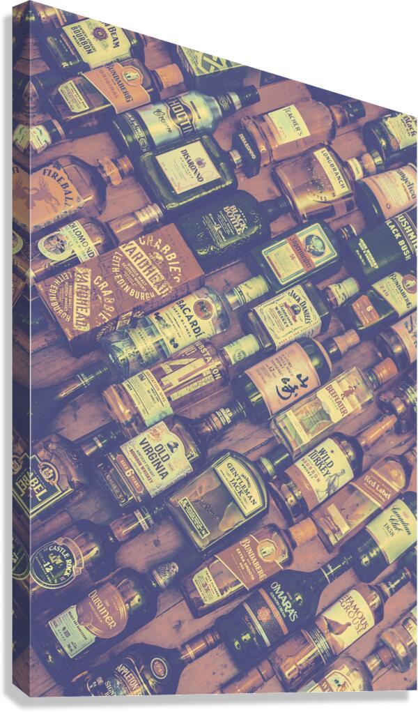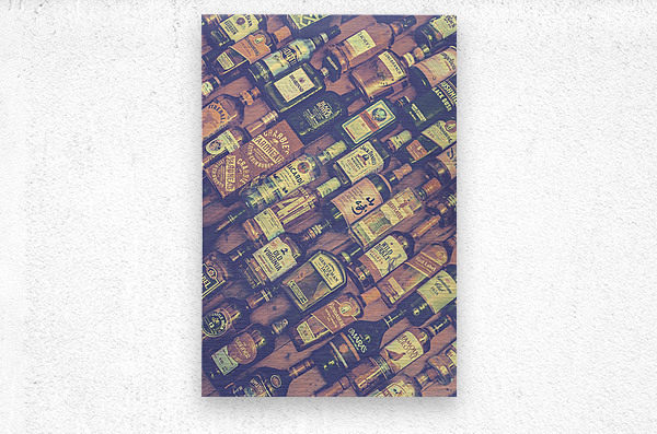 In subtle muted tones and retro class a bottle background of mixed drinks lay diagonally positioned at the mixing lounge
