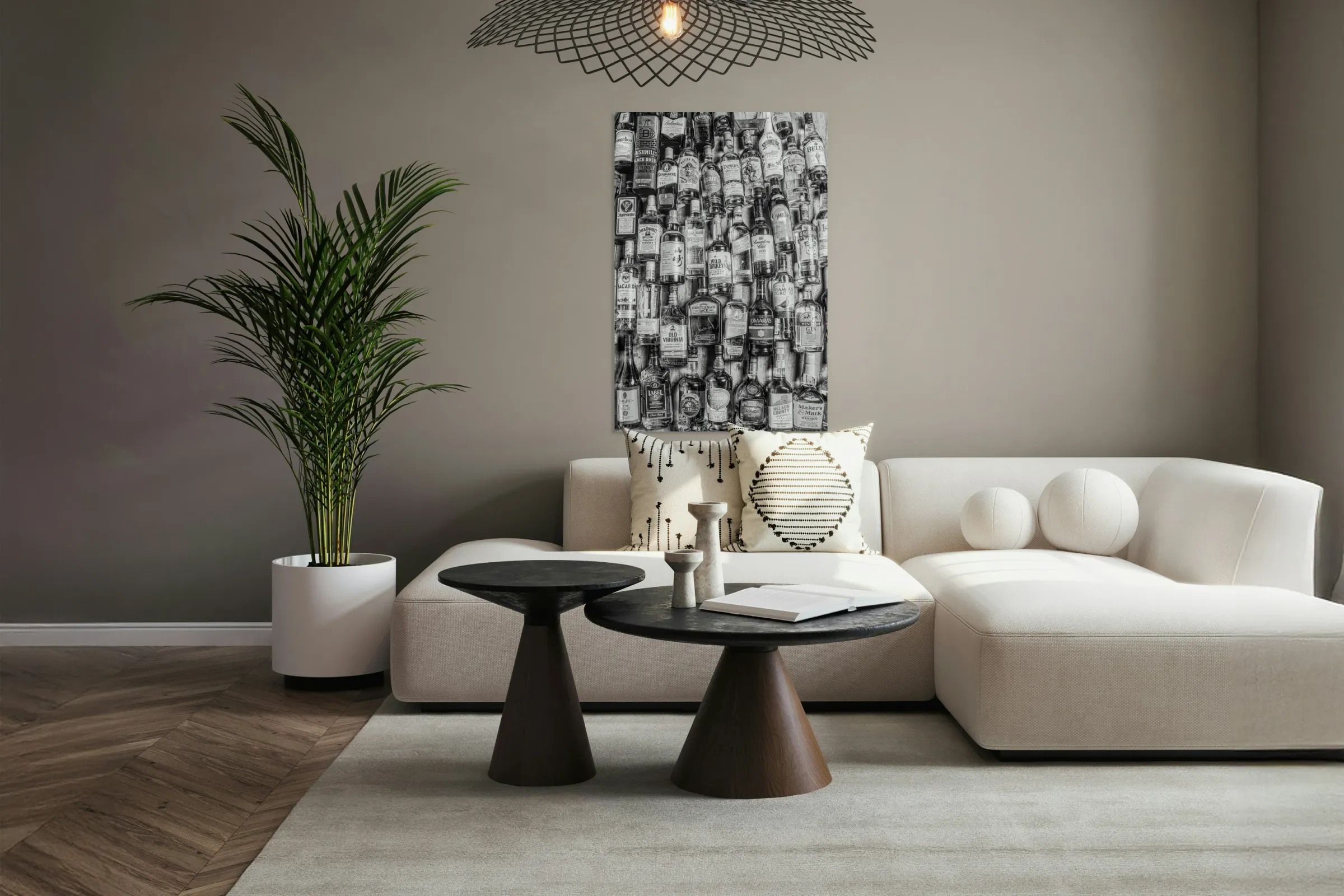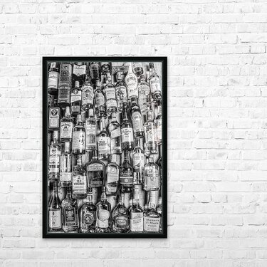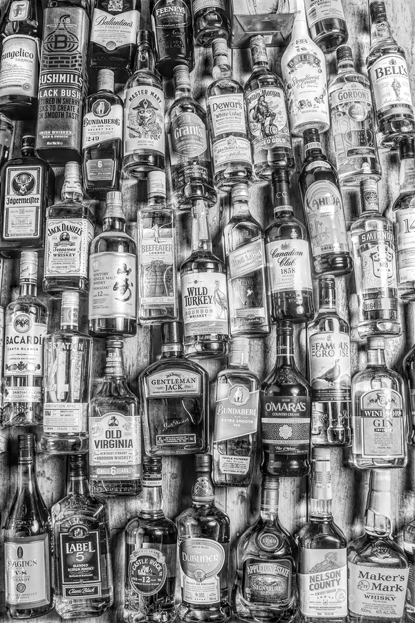 Batch of renowned beverage favourites stand stacked in stock of pub glam and monotone clarity