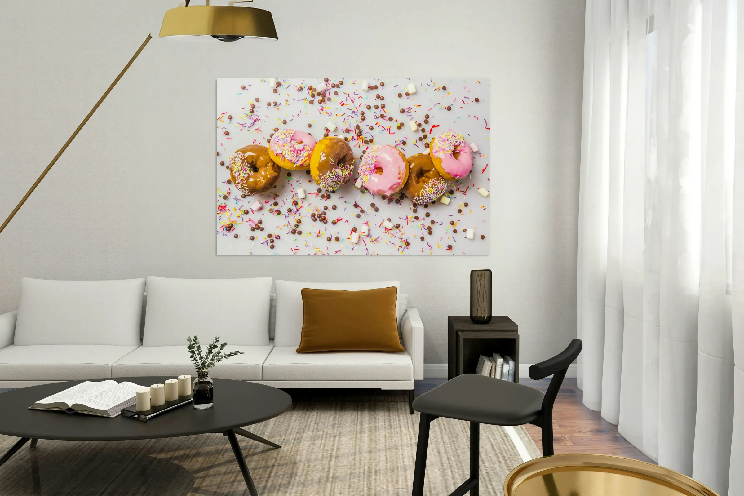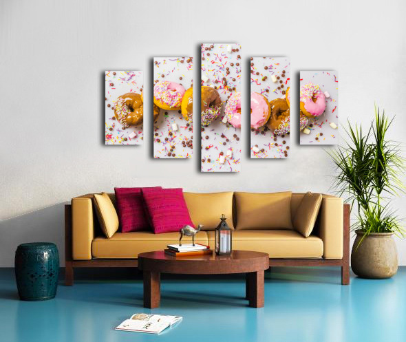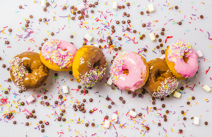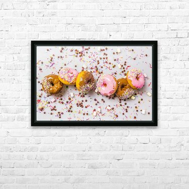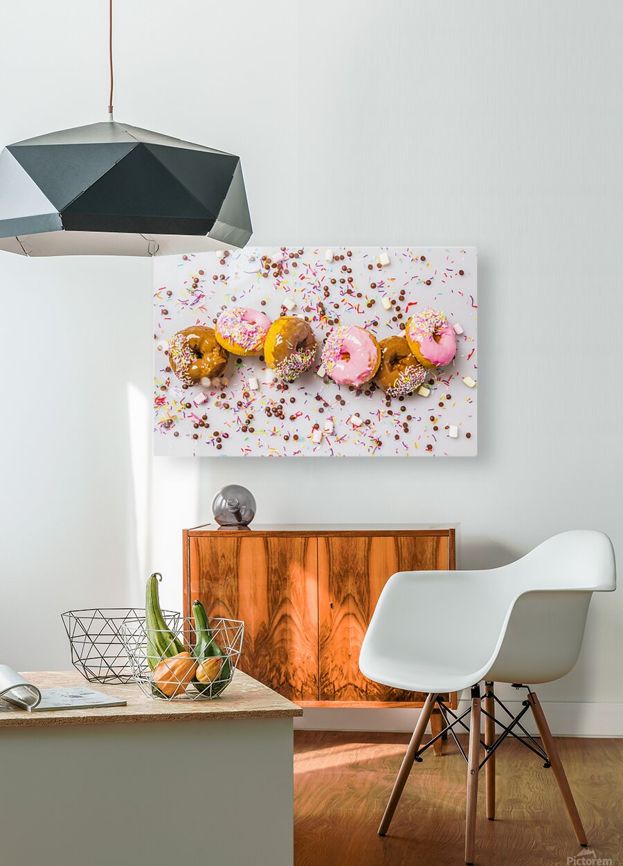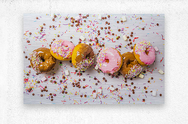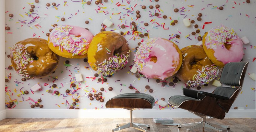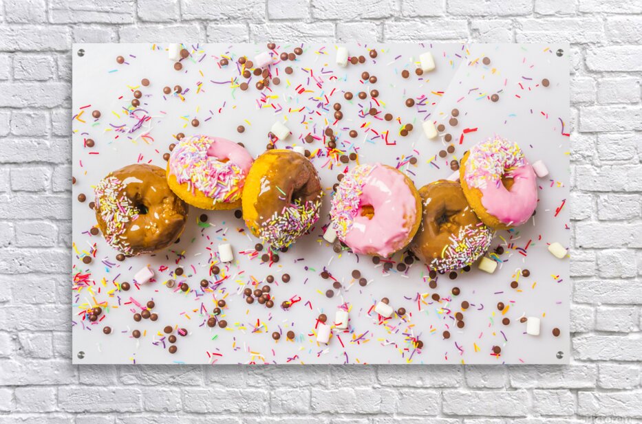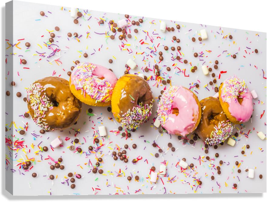 Candied colored contemporaries with a decorated display of delectable donuts and sweet sprinkled celebration