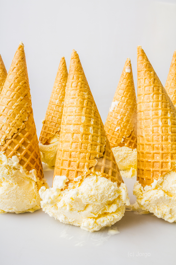 In a scoop of modern fun ice cream cone confections play a visual party of tipping and tables and making messes