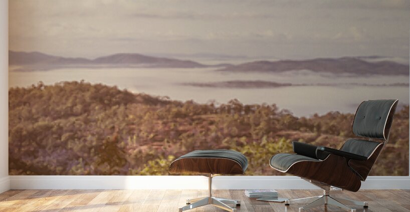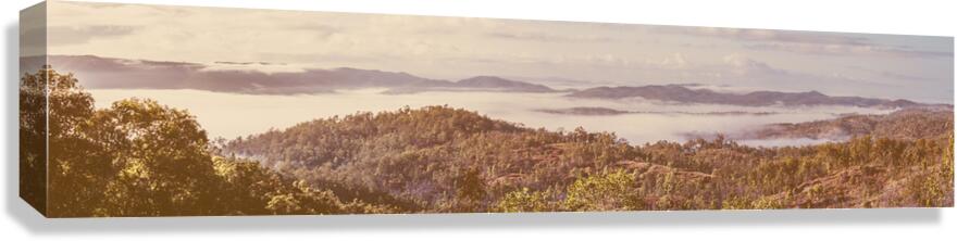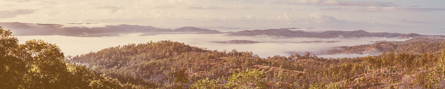 Wide open views of misty morning mountains shrouded in scenic subtitles of pastel tones and soft colouring. Taken: Mount Perry Queensland Australia