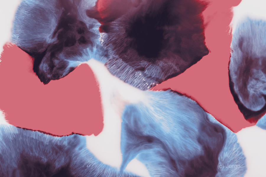 A dabbed macro swab of swirls of blue and light red swatches abstracted in a visual view of iris esque peering perspectives. Photography created using...[+]