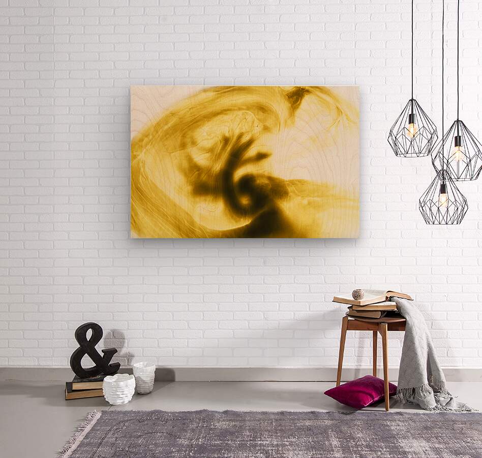 Feeling the flow a gyration of yellow moves with the hands of a artists impression on white background. Photograph made with food coloring water and m...[+]