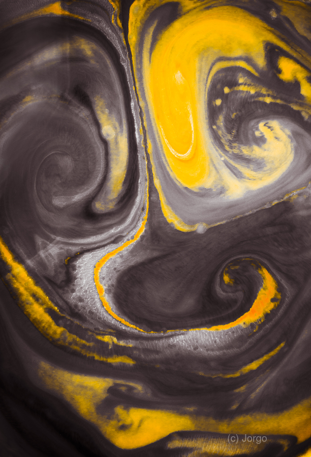 A stream of gold travels through washes of wonderfilled absttraction complexed in a terraform of visual terrains. Photography made with food dyes water and milk