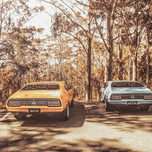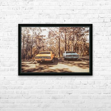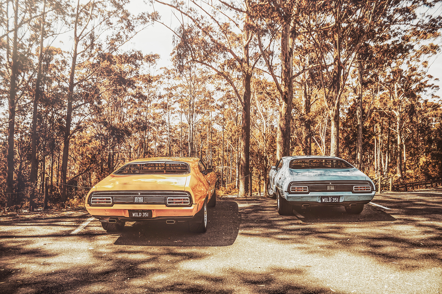 Countrified classics with two legendary Ford Falcon XB GT Hardtops parked side by side in double trouble styling. Taken Mount Mee Queensland Australia
