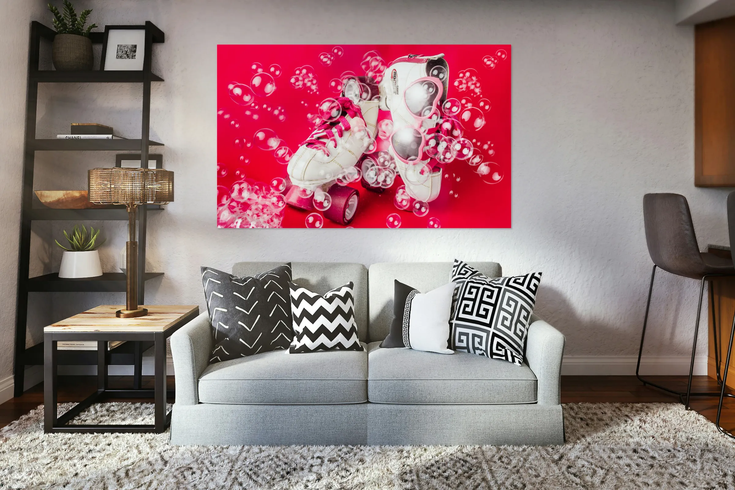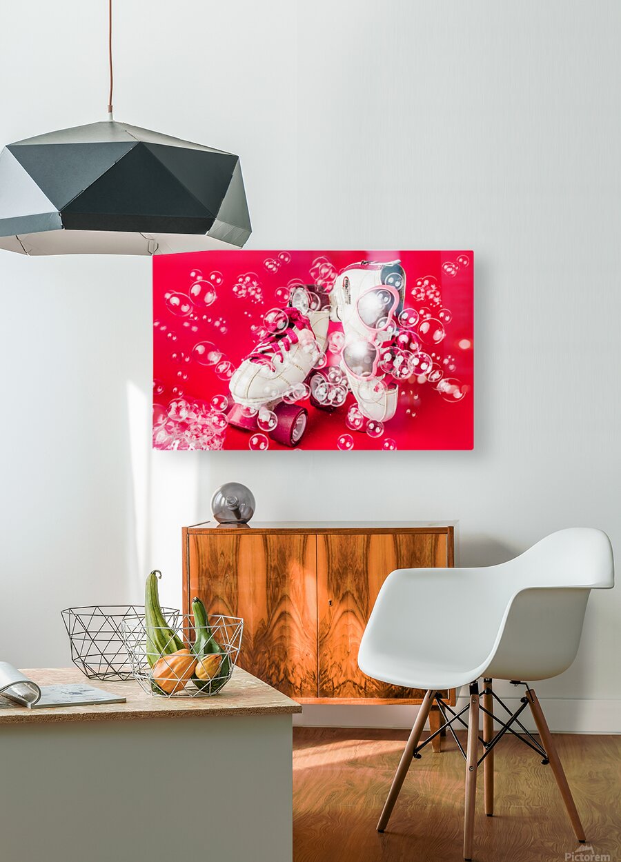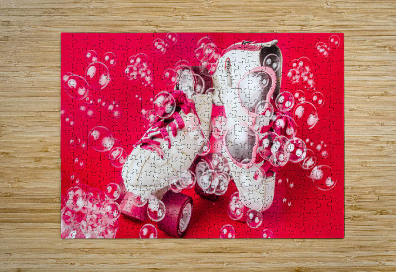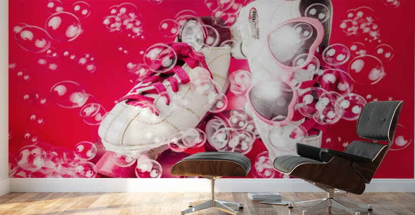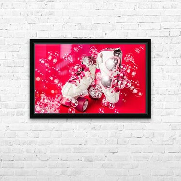 Dancing among the bubbles a pair of rollerskates decorate a cool scene of summertime fun
