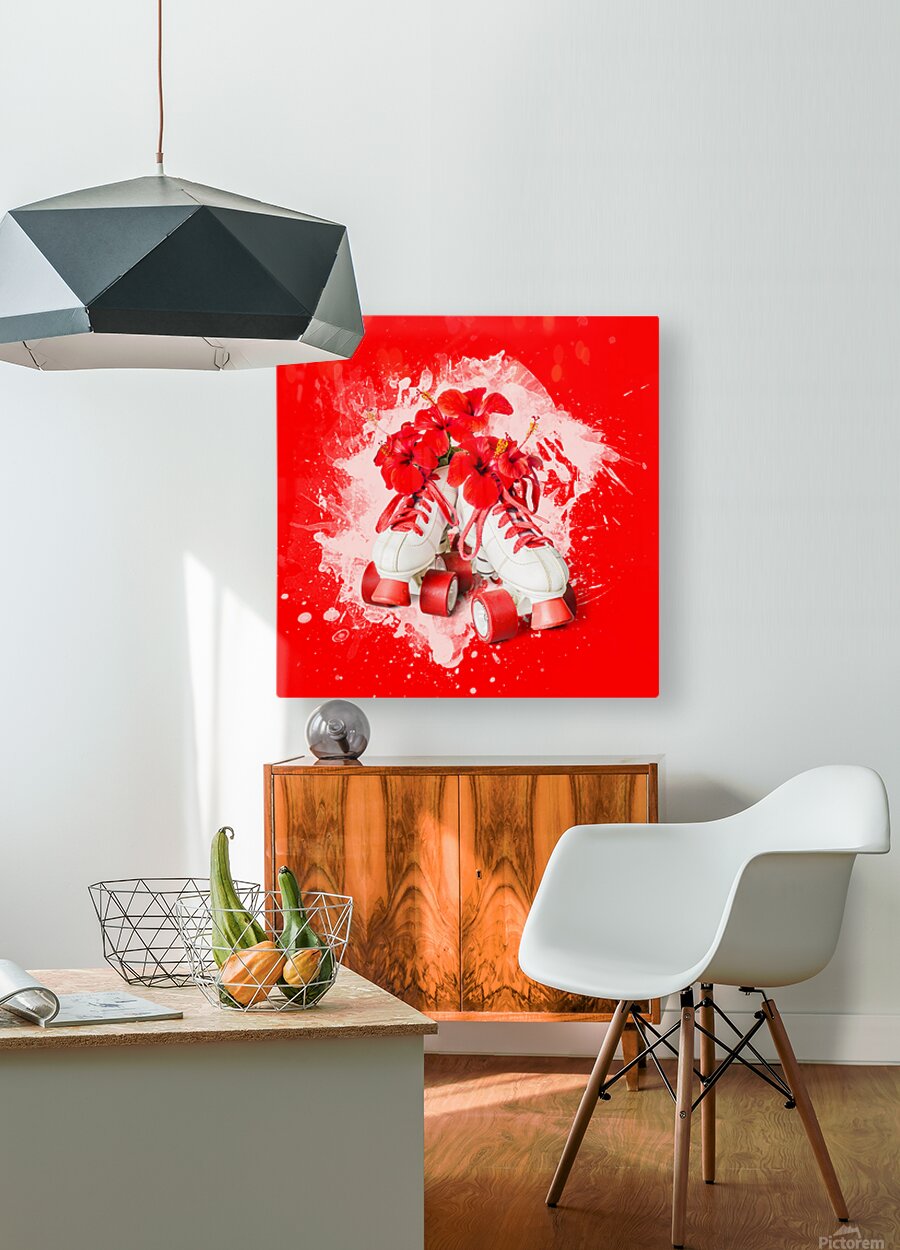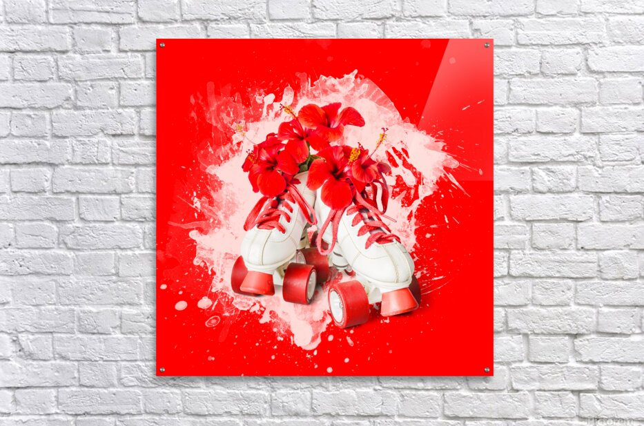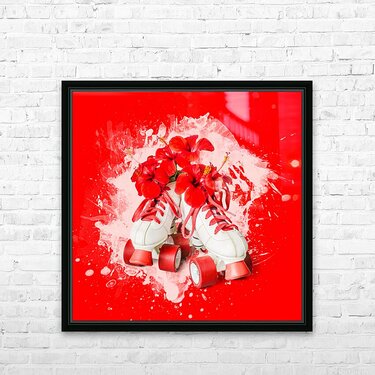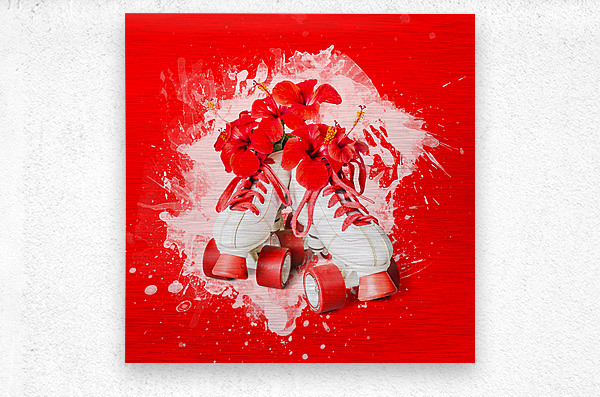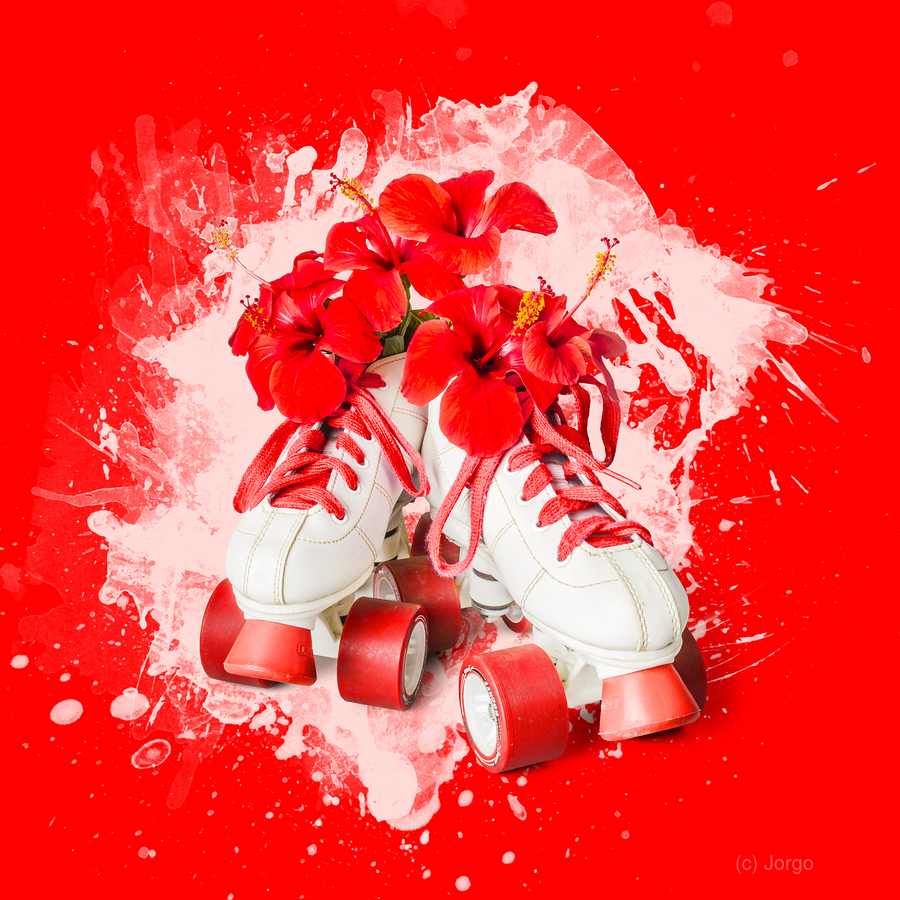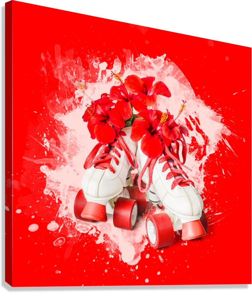 Splash of fun with retro styled roller skates delivering hibiscus flowers and bursts of creative style
