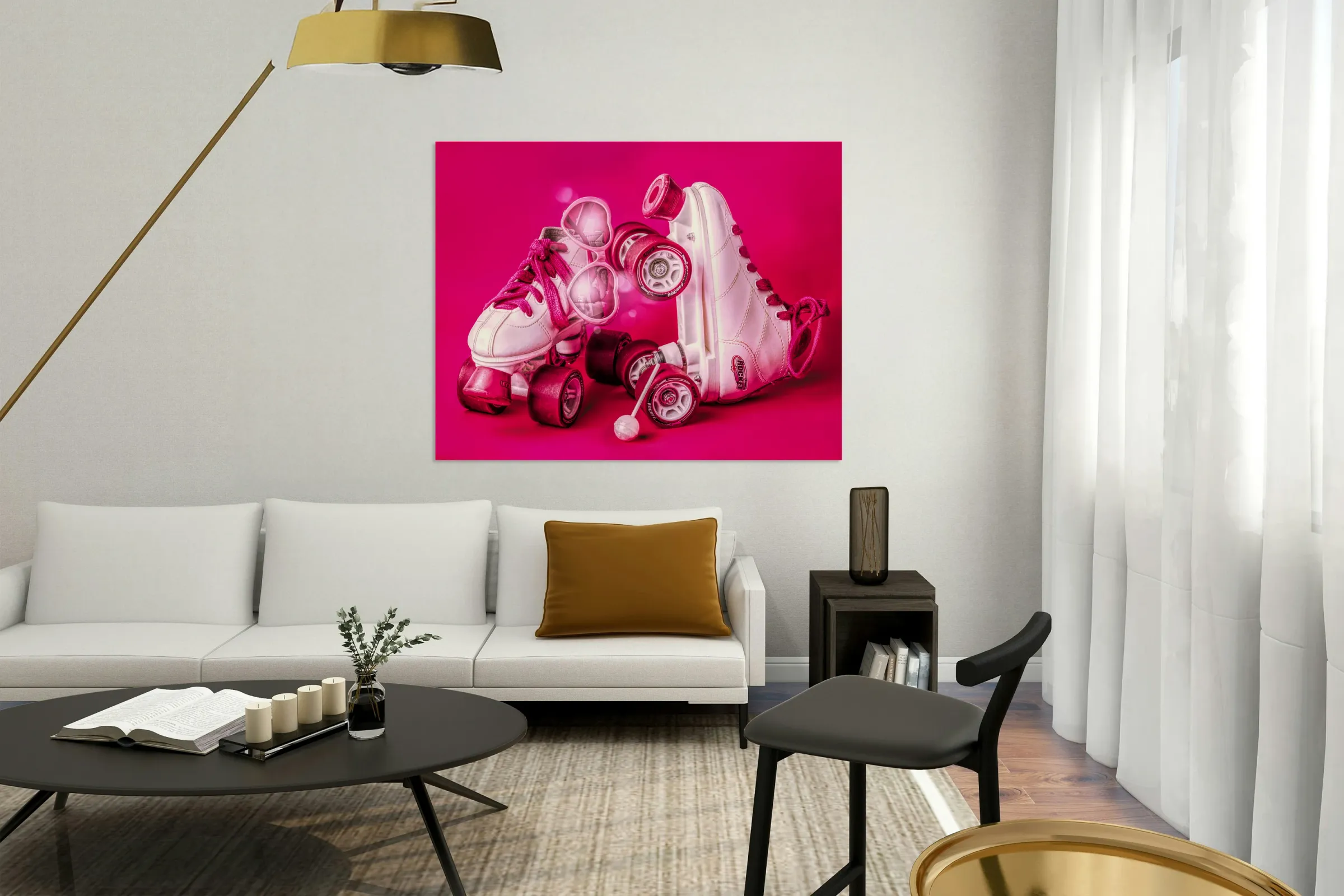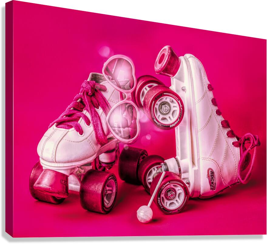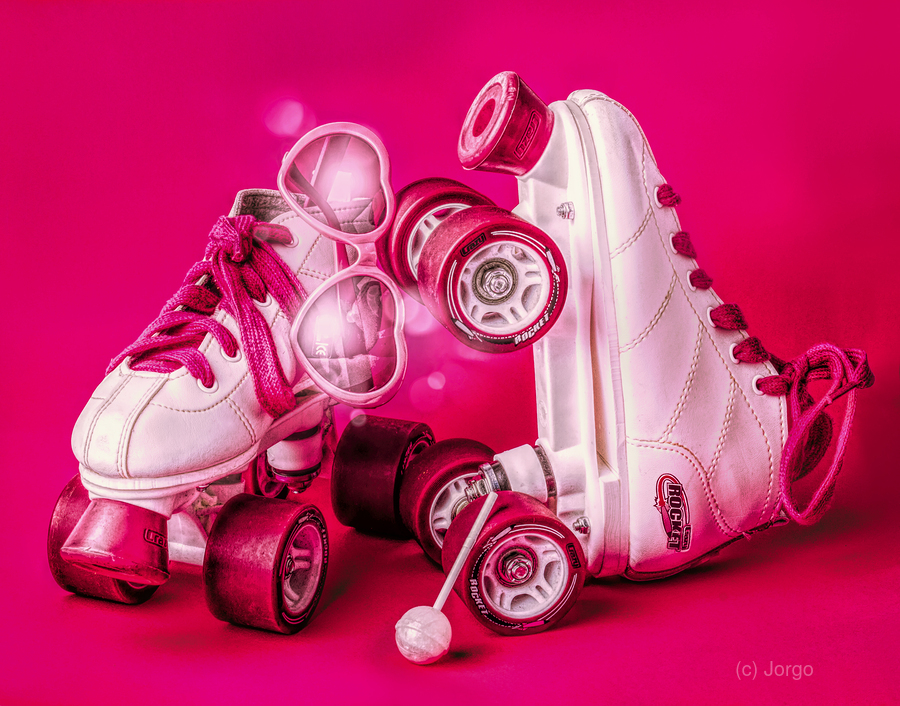 All pink playout of sweet summer sentiments with roller skates love shades and lollypops