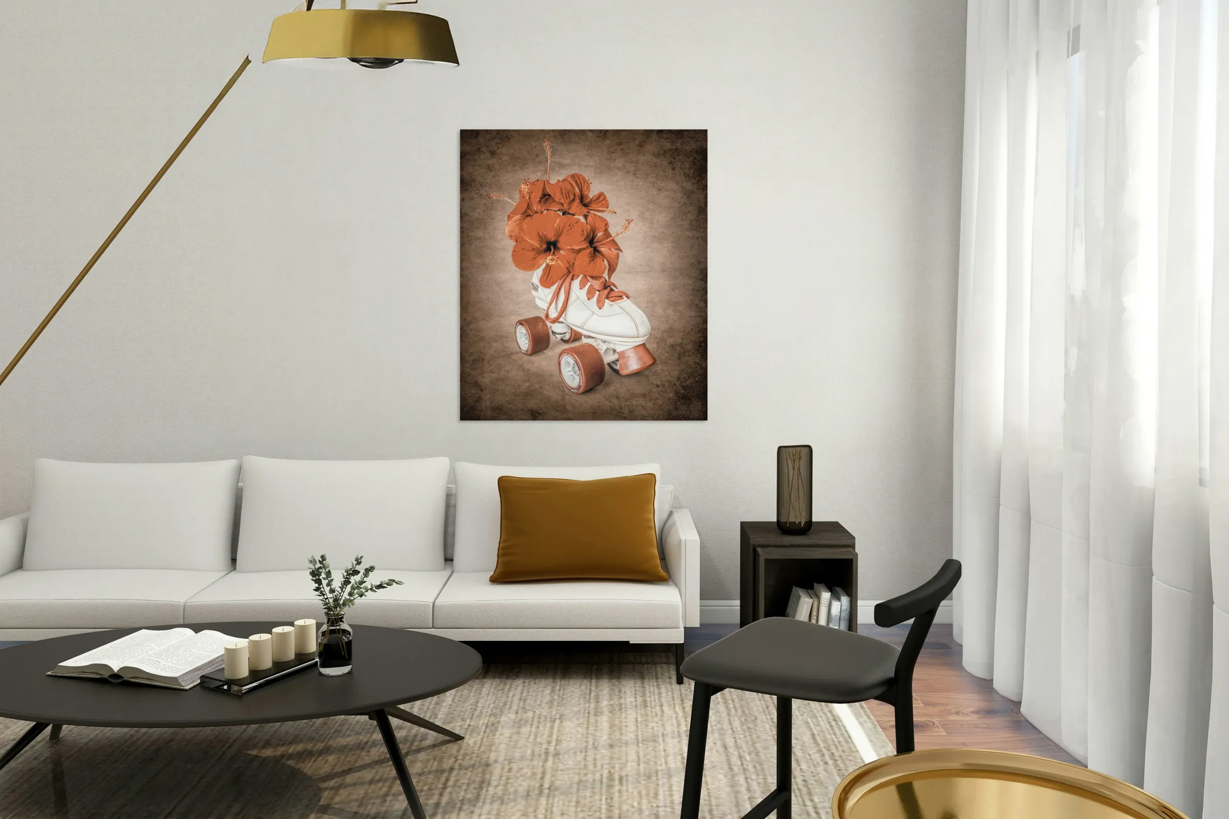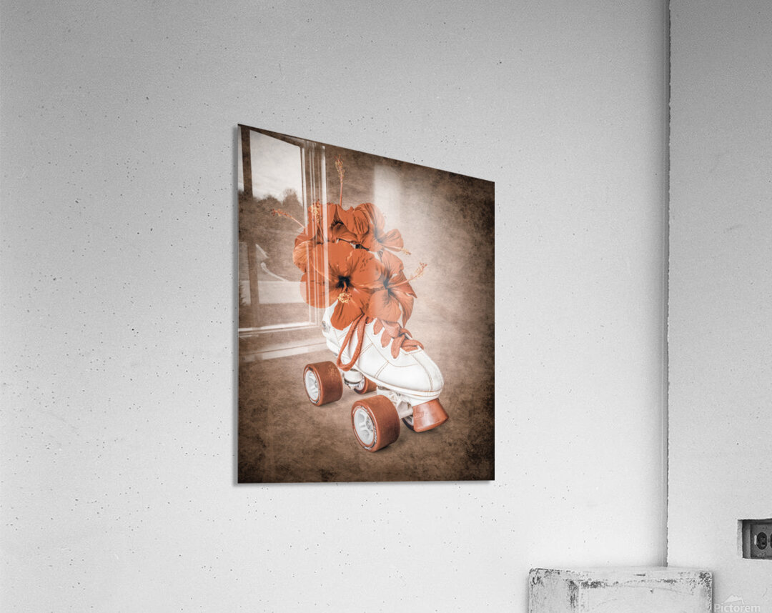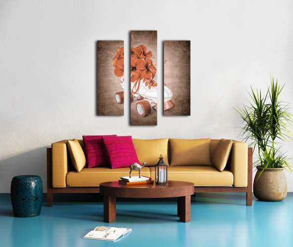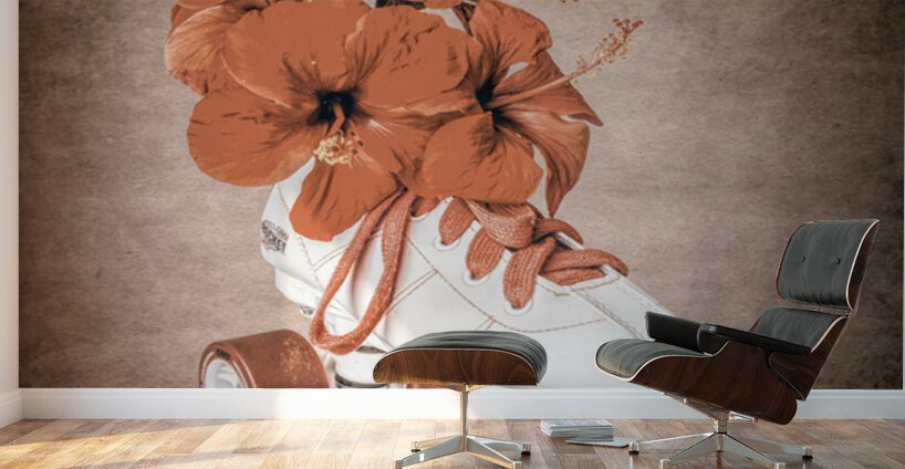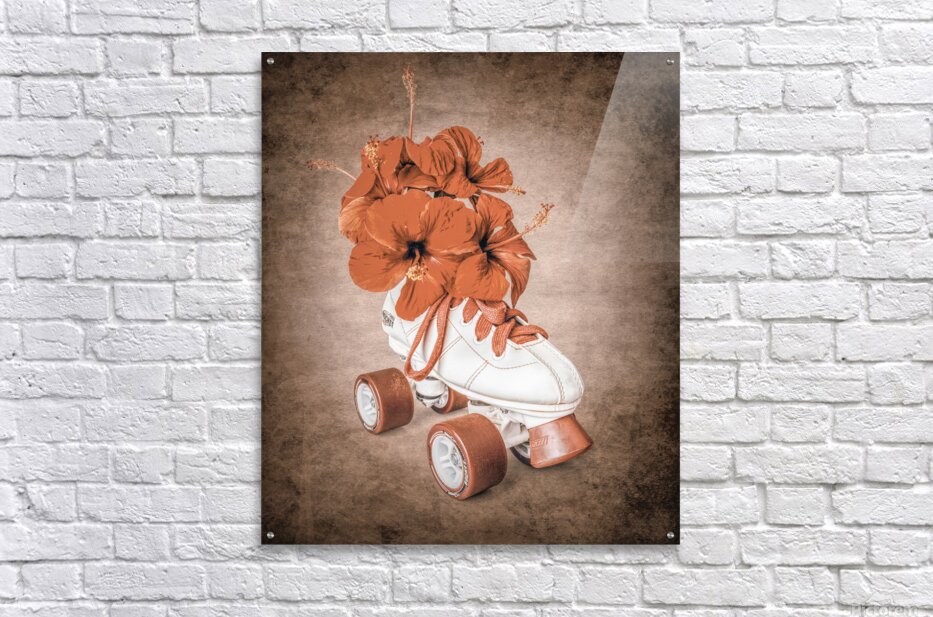 In playful sentiments a vintage rollerskate boot is filled and decorated with hibiscus flowers evoking old-fashioned nostalgia