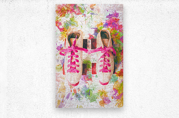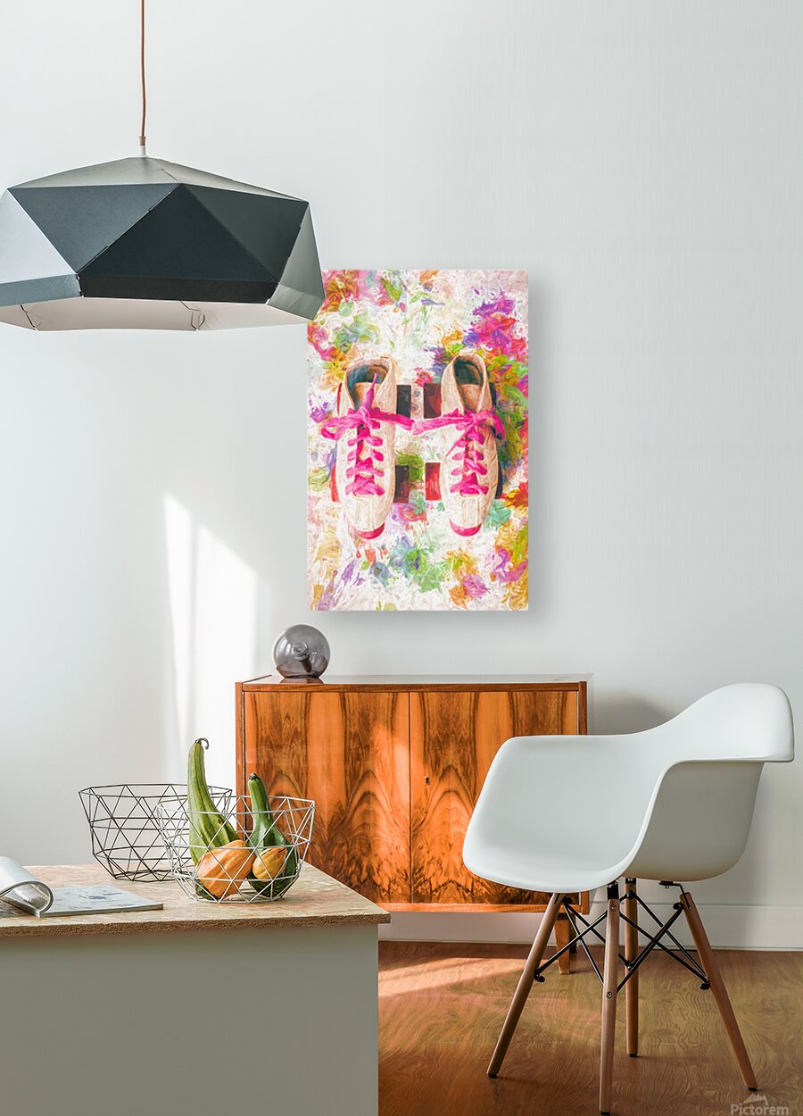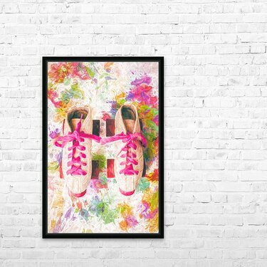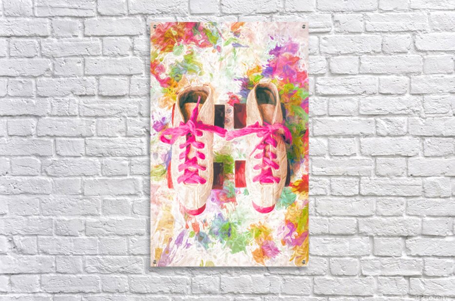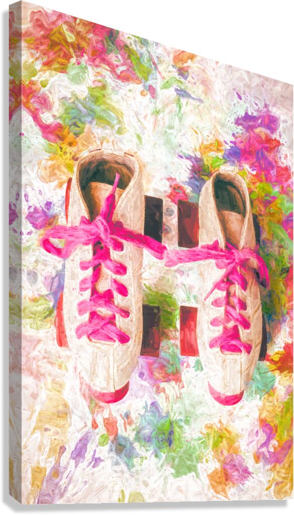 Pop art painterly play of colourful nostalgia with roller skate shoes and splashes of artistic movements on white background