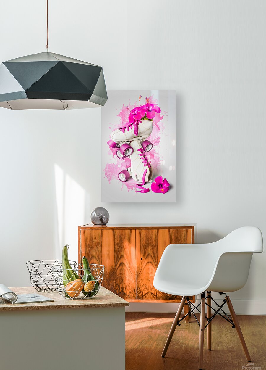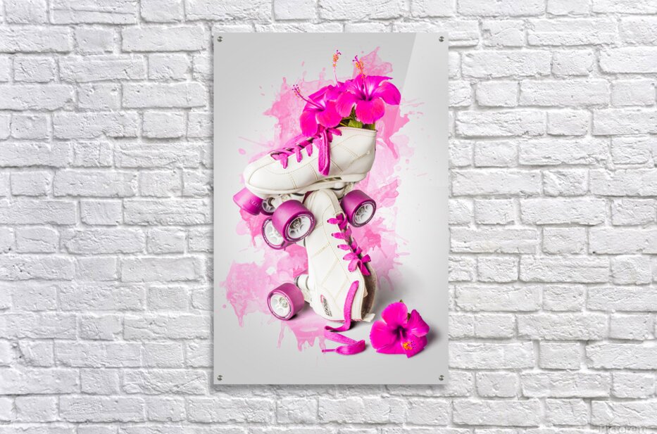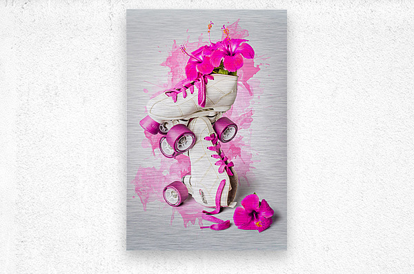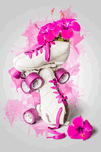 Floral foray in chic skate with rollerskates decorating hibiscus flowers in a playful painterly pink propagation