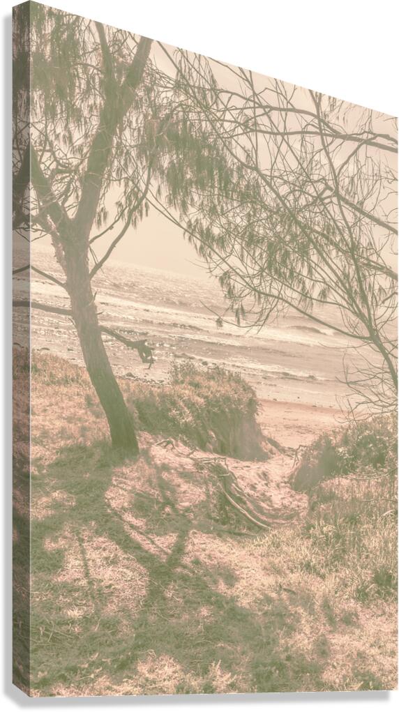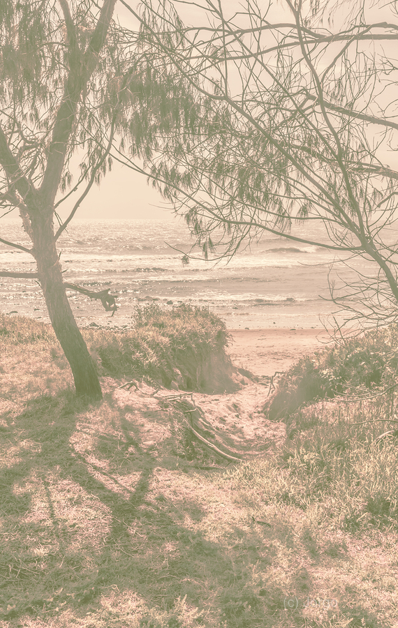 A pastel toned washout of retro tints and coastline wonders with beach dune paths and shoreline surf. Captured: Bargara Queensland Australia