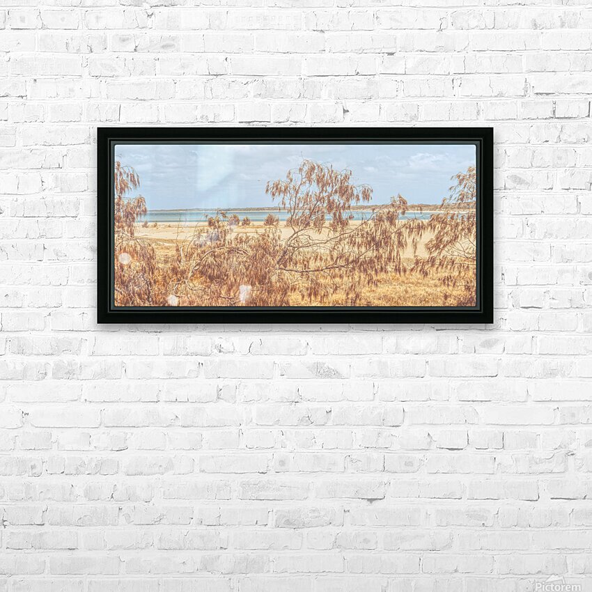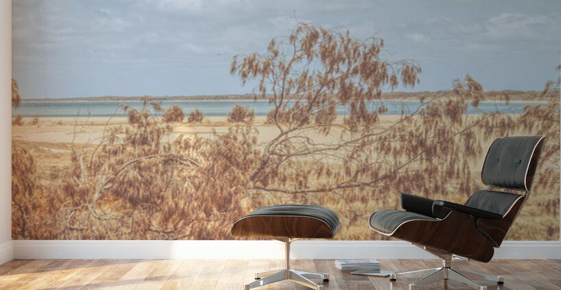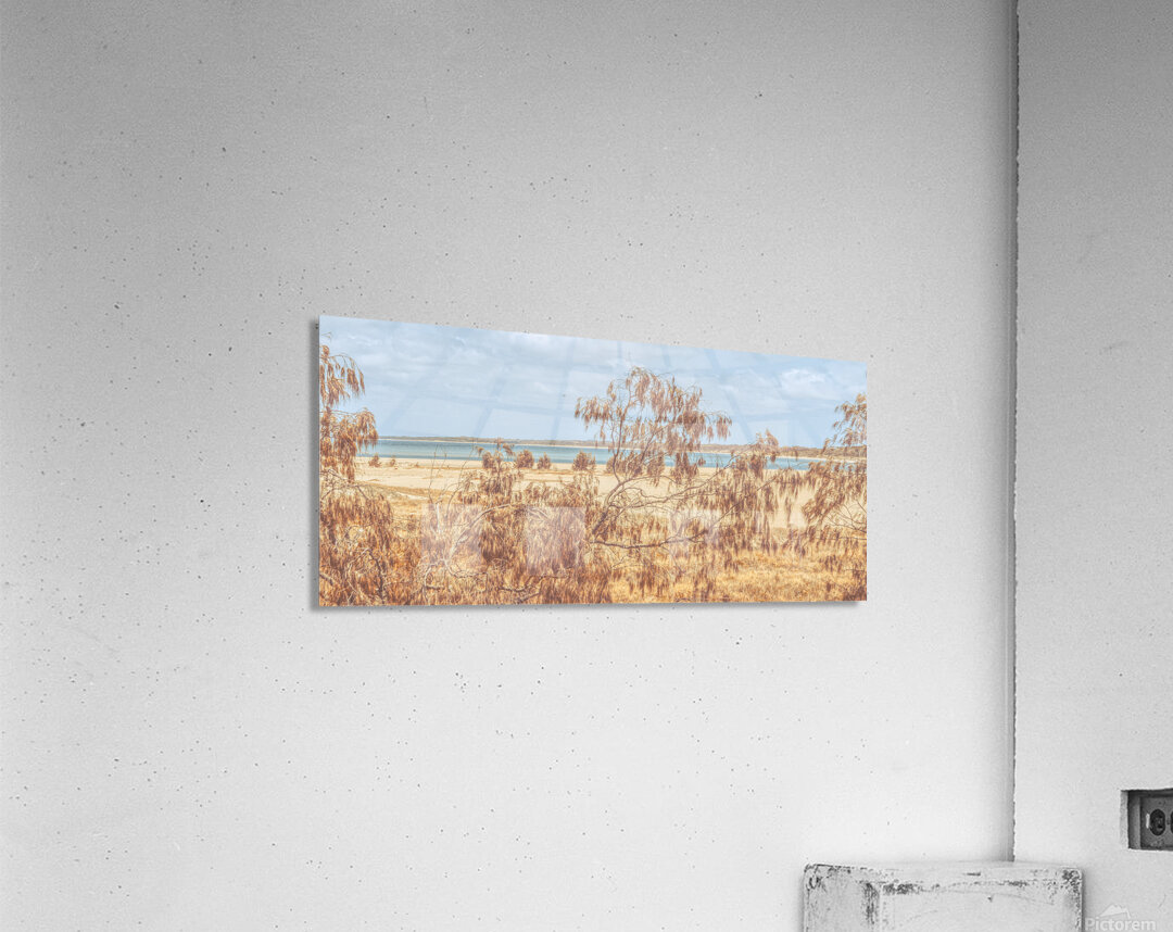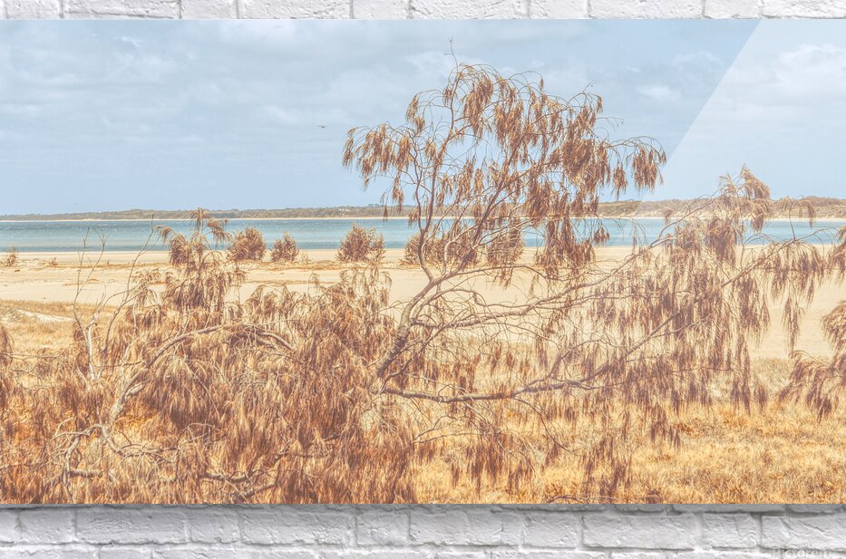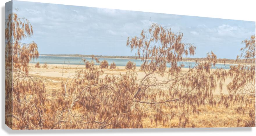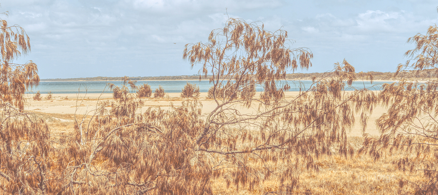 Peaceful coastal panoramic of she-oak trees framing the tranquil beaches of Elliott Heads Queensland Australia
