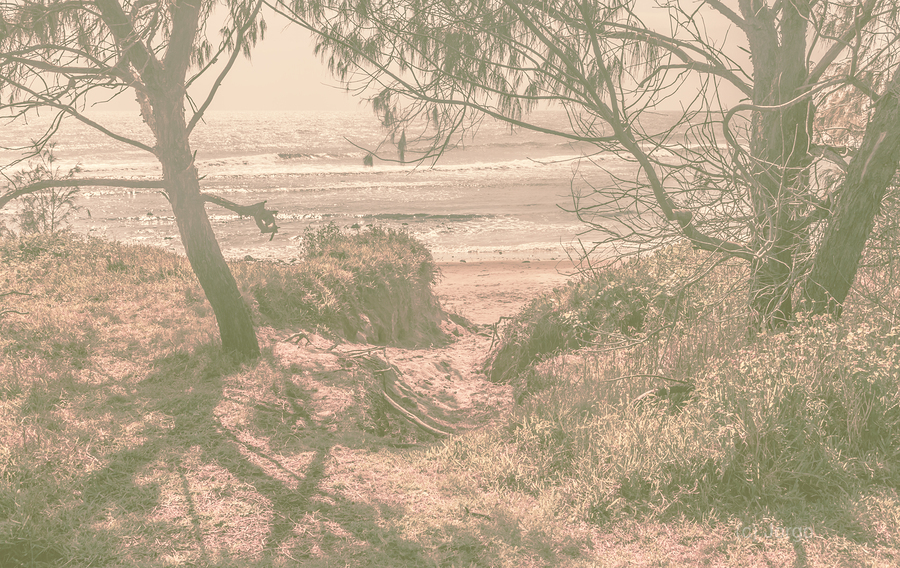 Faded scene of pastelic bliss with a walkway through sand dunes to untouched beaches. Taken: Bargara Queensland Australia