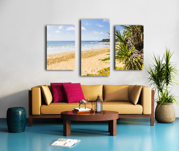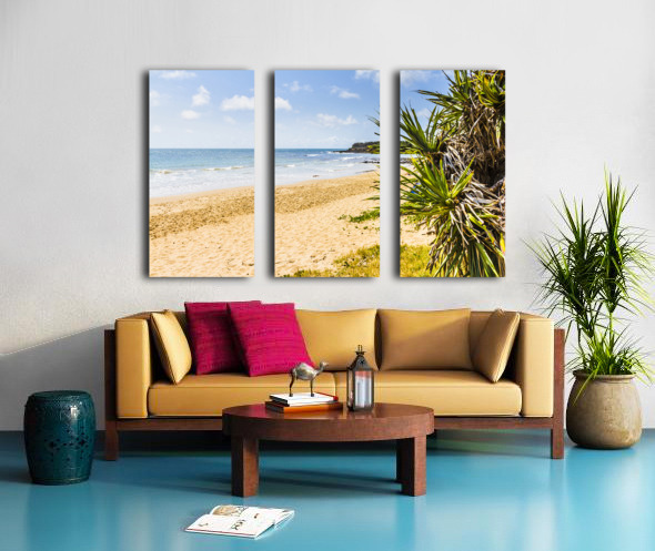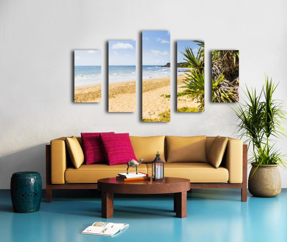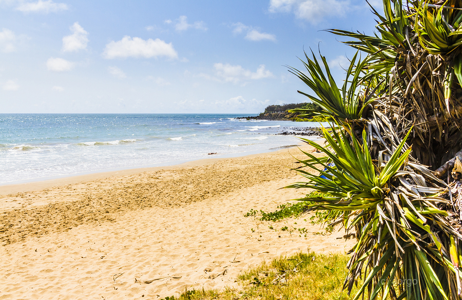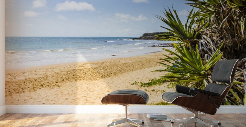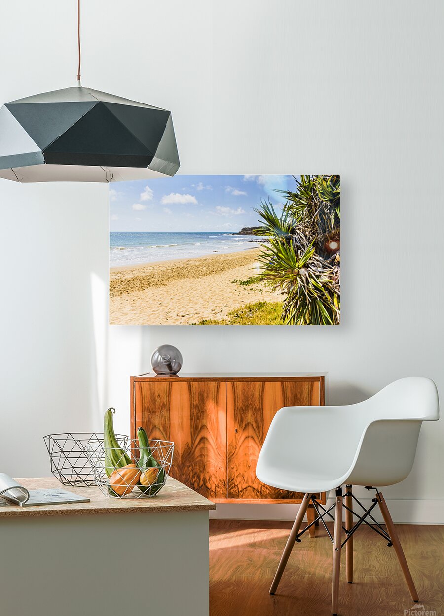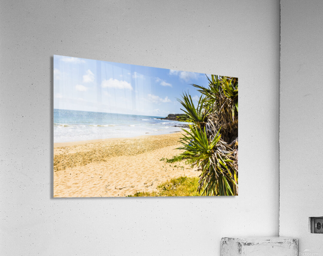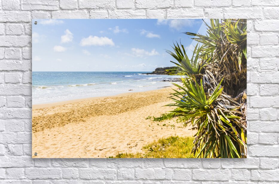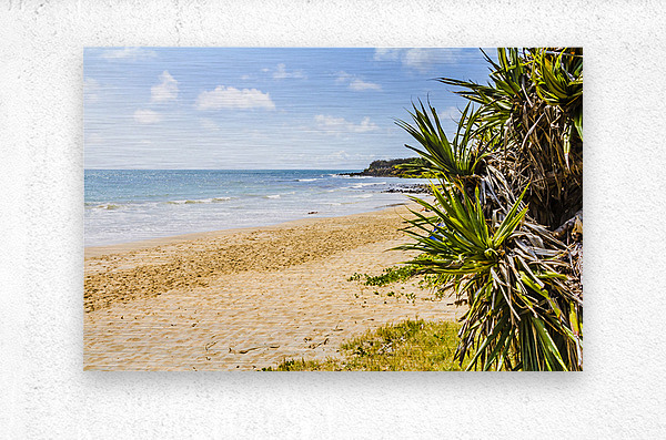Vibrant horizontal photograph of a tropical paradise bathed in sunlight palms and sand. Captured: Bargara Queensland Australia