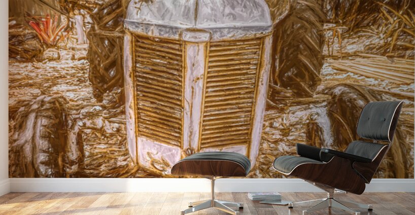 Worn and rugged scene of past agriculture with a classic farmyard tractor stained in aged fades from past summers