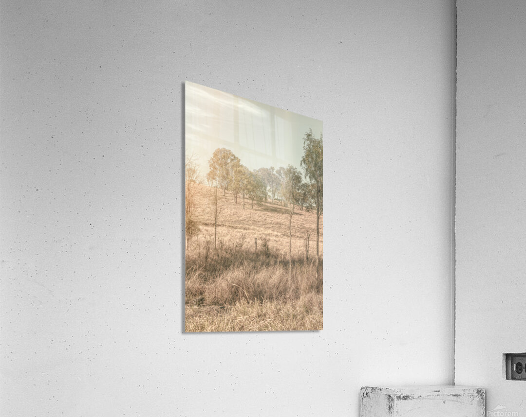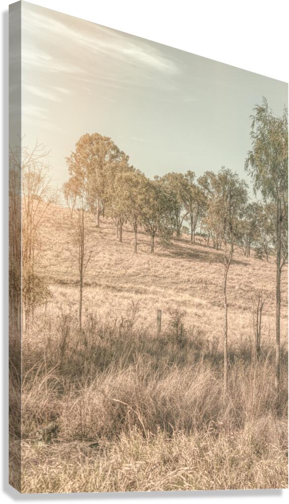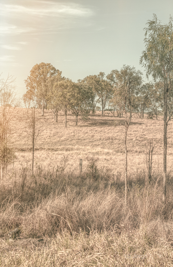 A beige backcountry vista of farm fields and bleached grasses with sunset rays and pale palettes. New Moonta Queensland Australia
