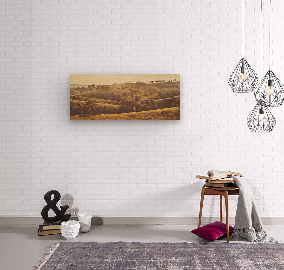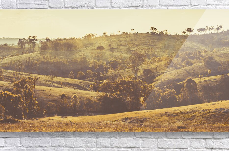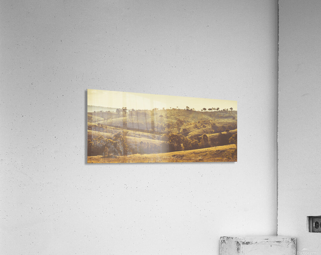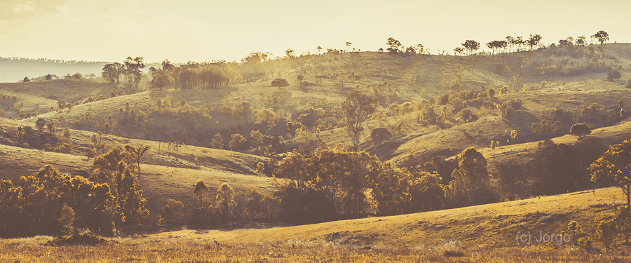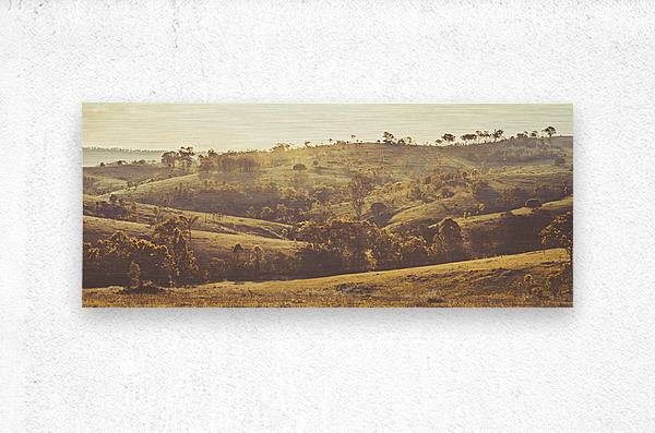 Weathered and worn by daylights fade a vintage countryside panorama glistens in faint sun flares and rugged rural tones. Mount Perry Queensland Austra...[+]