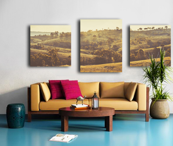 Weathered and worn by daylights fade a vintage countryside panorama glistens in faint sun flares and rugged rural tones. Mount Perry Queensland Australia