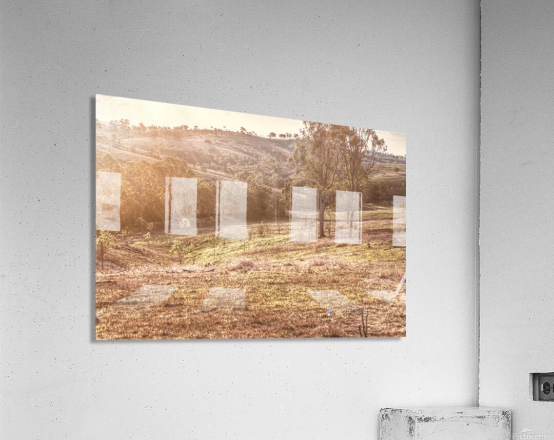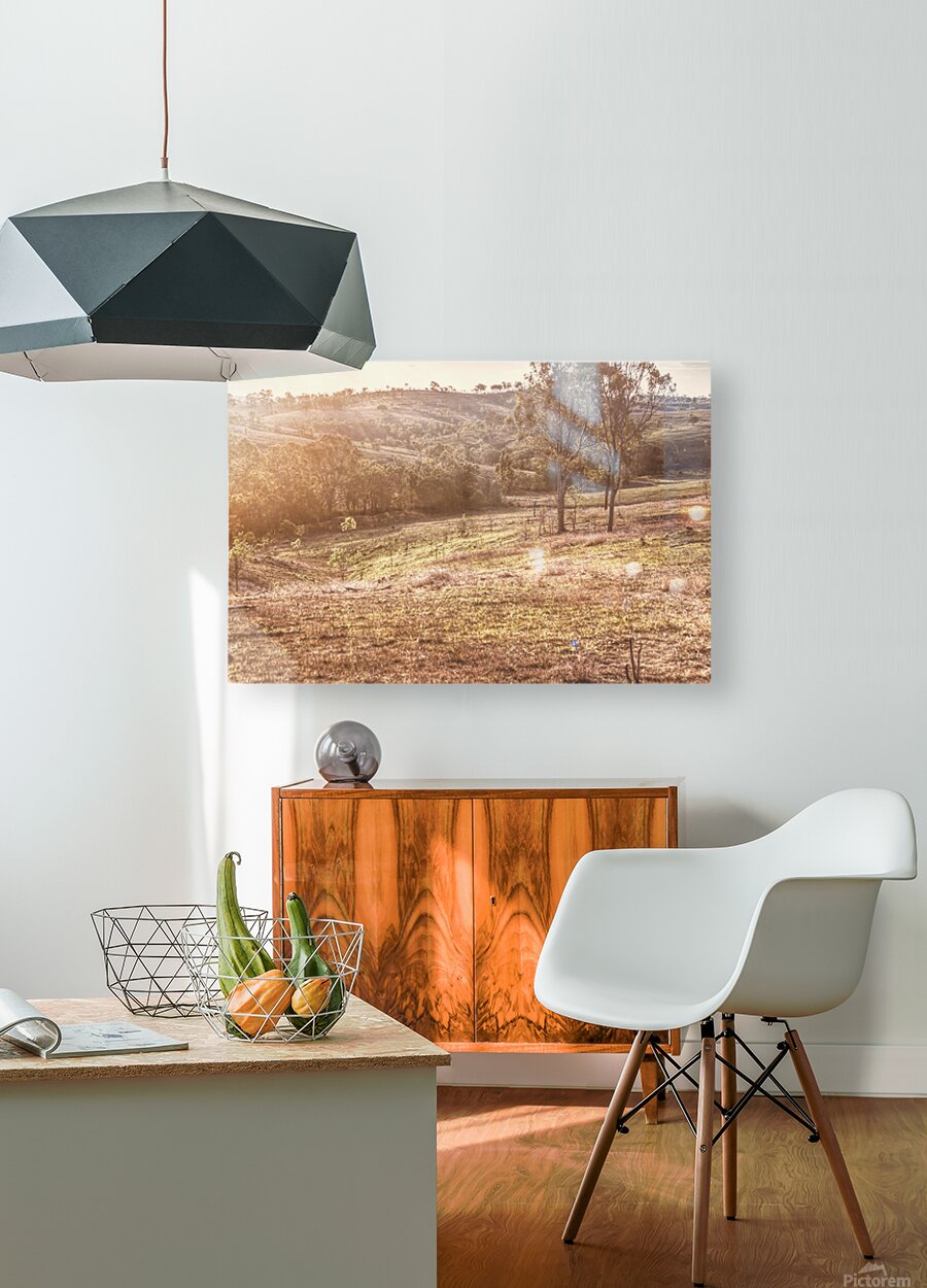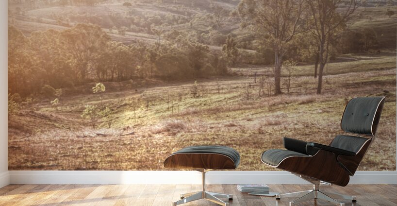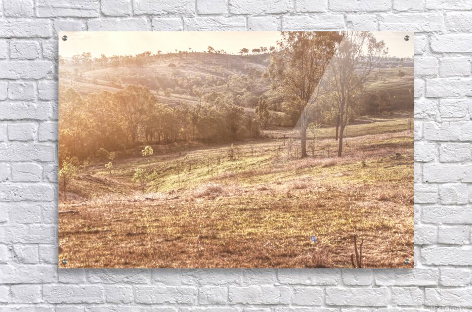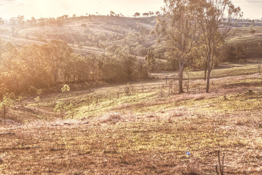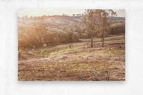 Golden light bathes a serene landscape of Mount Perry as trees and hills create a peaceful scene of country harmony. Mount Perry Queensland Australia