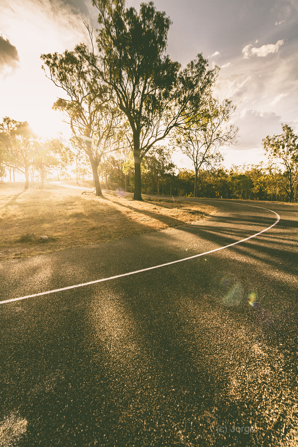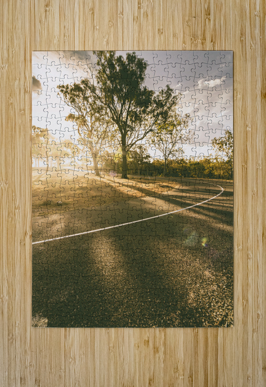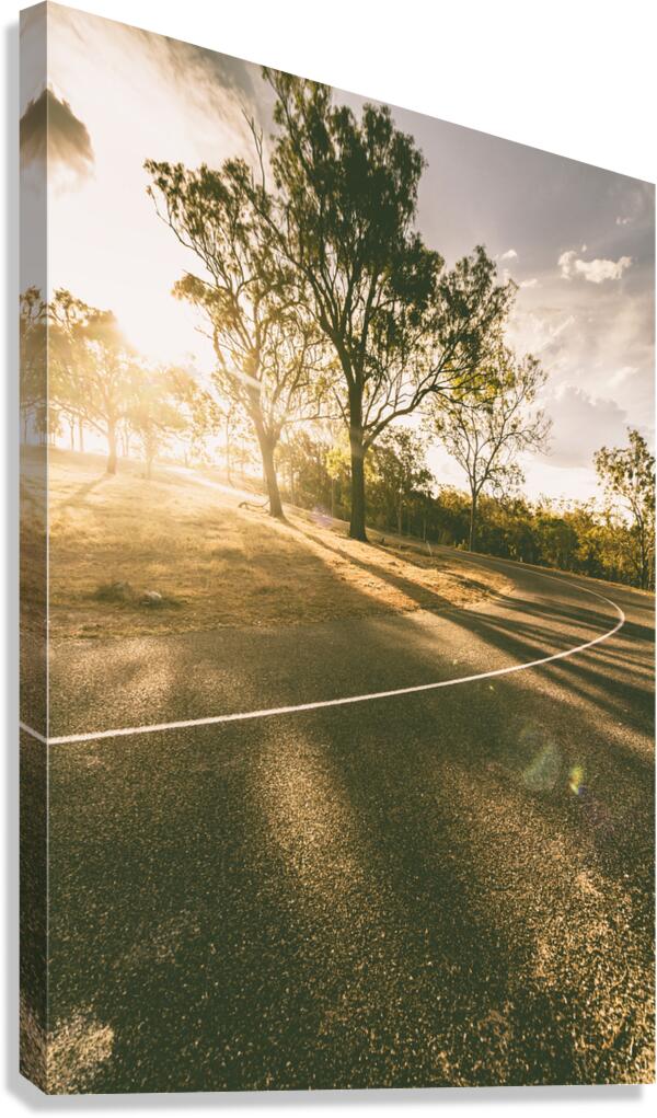 A dramatic sundown sweeps across a country lane in a turning point of daylight fading. Mt Perry Queensland Australia